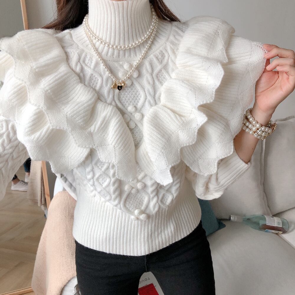 【韓国ファッション】大人可愛い ラッフルパターンルーズスリーブニットセーター レディース 大人ガーリー スウィート キュート カジュアル ステッチ ♡ 韓国98094908069 | パリジェンヌ、韓国系ファッション July