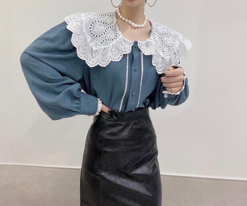 【韓国ファッション】大人可愛い レースFlowerデザイン カラーシングルブレストルーズスリーブTシャツ シャツ フラワーデザイン ステッチ ♡ 韓国77742871942 | パリジェンヌ、韓国系ファッション July