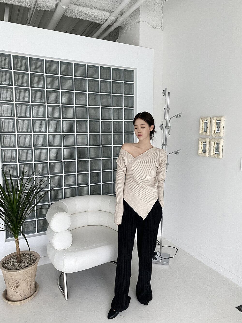 【韓国ファッション】大人可愛い オータムウィンターVネッククロスストラップレスストライプニットセーター ロング 秋物 冬物 ♡ 韓国38030567900 | パリジェンヌ、韓国系ファッション July