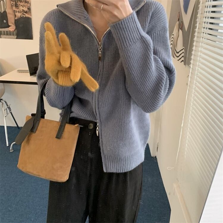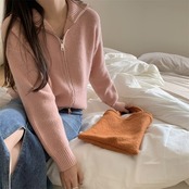 韓国服 カラーニットカーディガンルーズソリッド ダブルジッパーセーター コート オータムウィンター ピンク 秋物 冬物 ソリッドカラー ♡ nanfeng96382755757 | パリジェンヌ、韓国系ファッション July