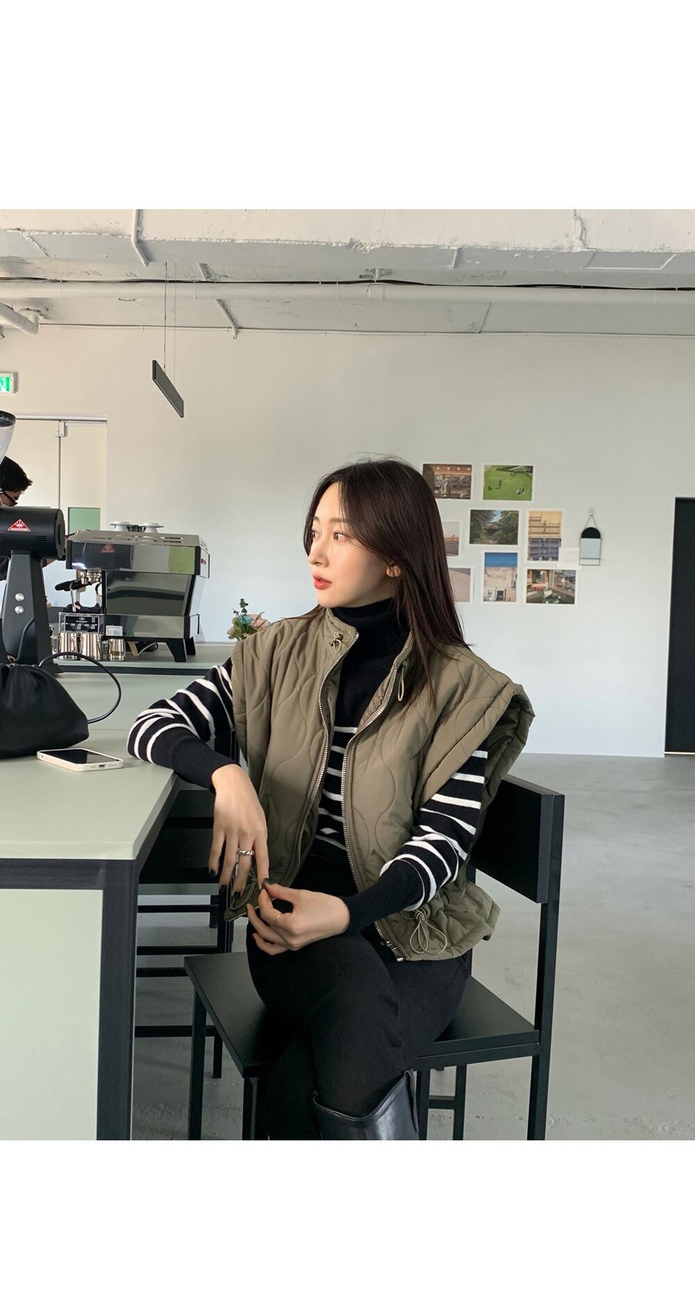 色:アプリコットベスト,アーミーグリーンベスト,緑のTシャツ,タートルネックセーター