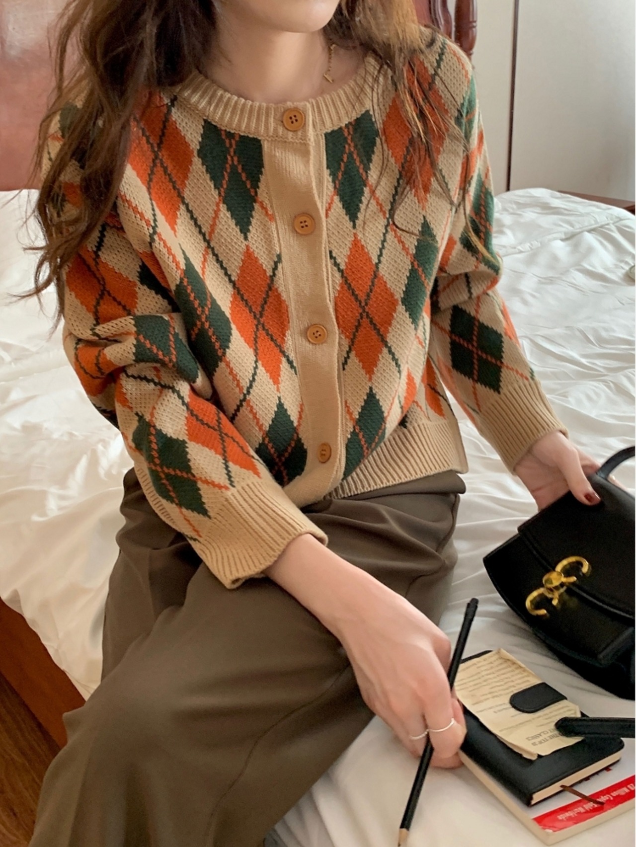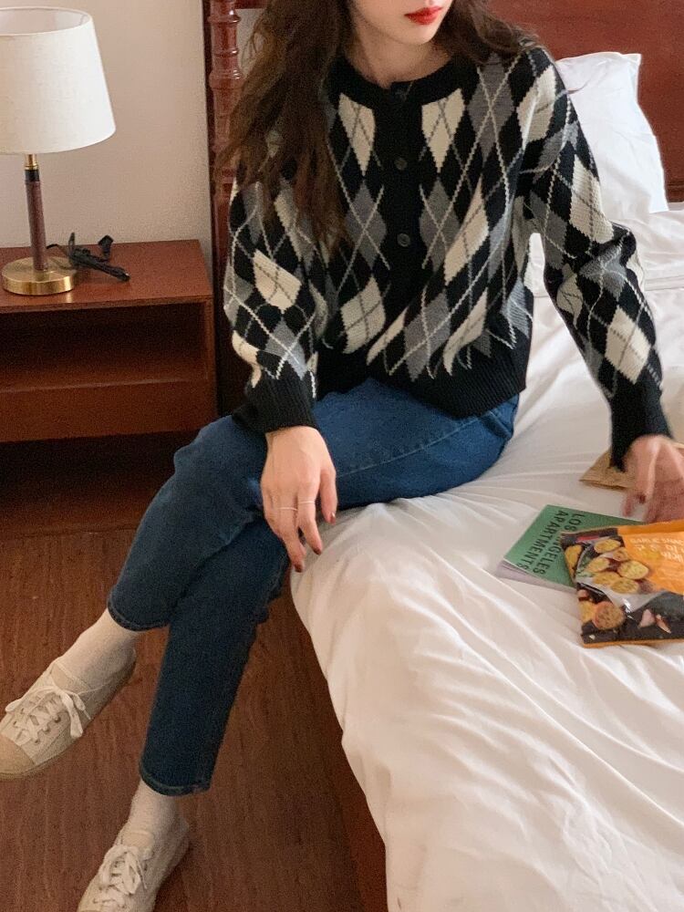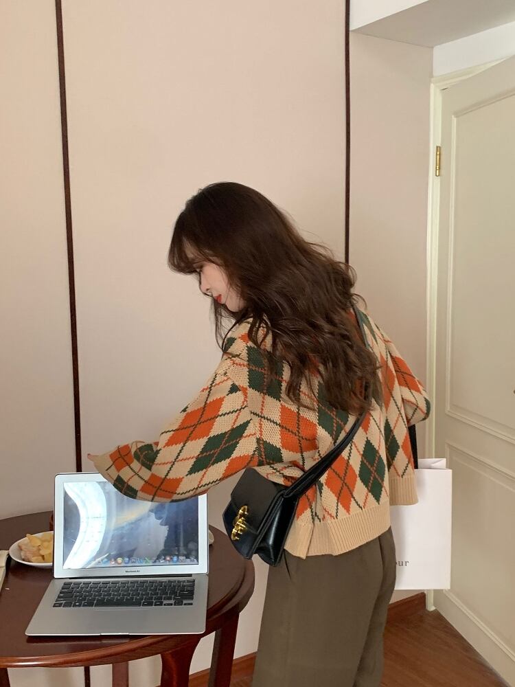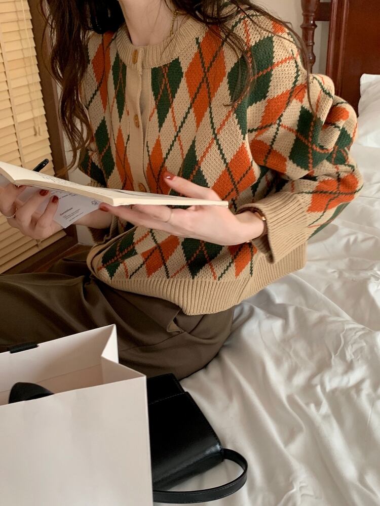 韓国服 スタンダードスタイルカラーニットカーディガンオータムウィンタールーズVネックセーター コート ロング レトロ 秋物 冬物 ♡ nanfeng29395415543 | パリジェンヌ、韓国系ファッション July