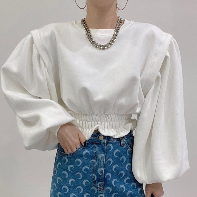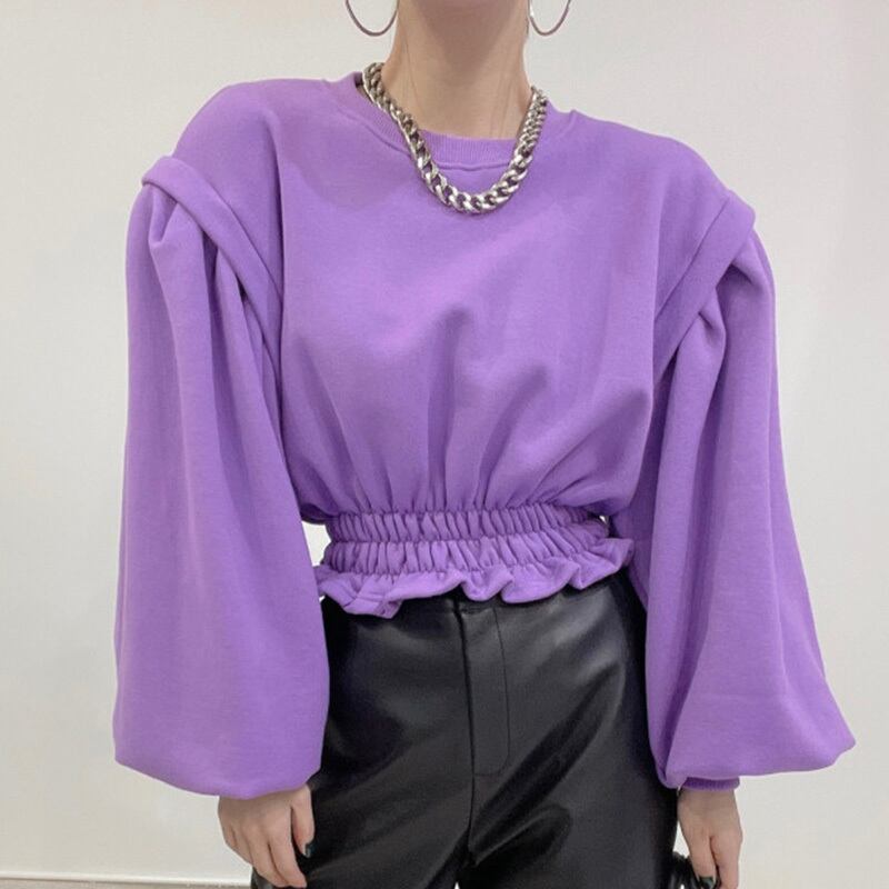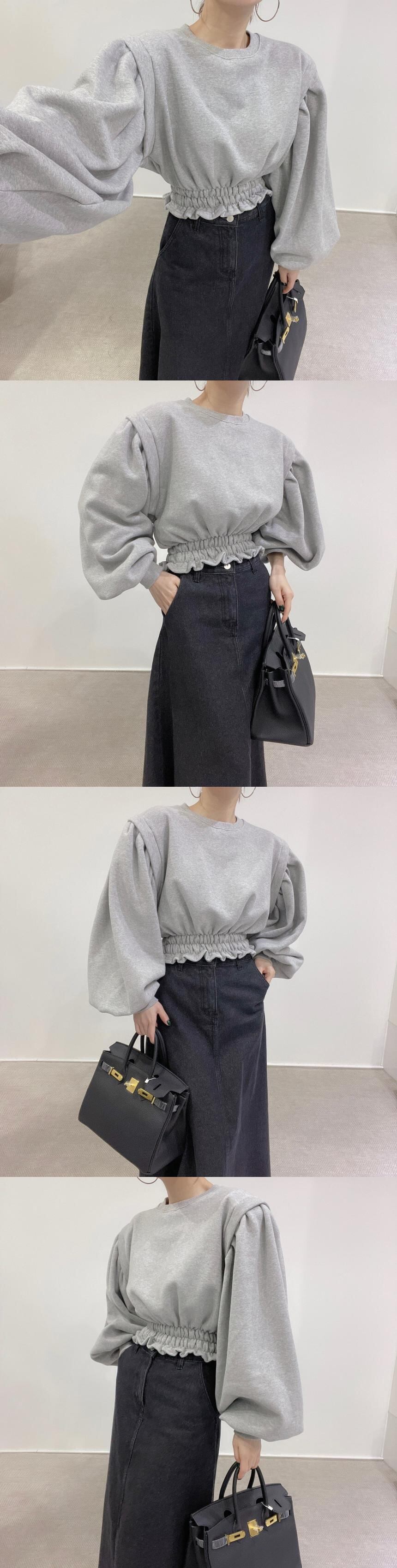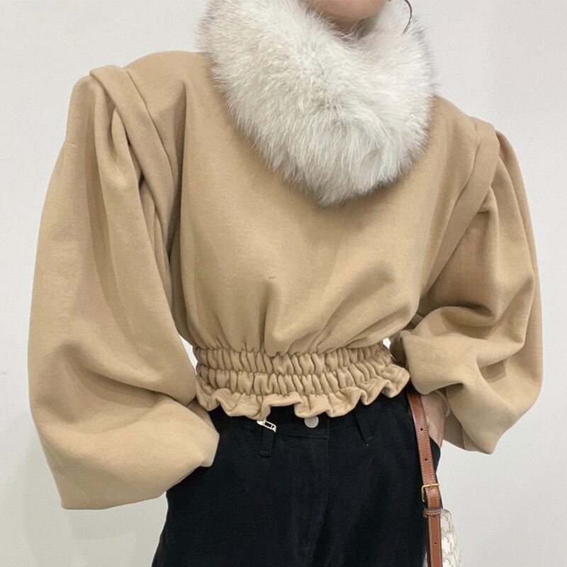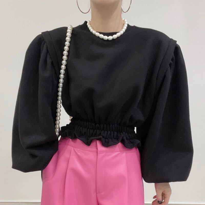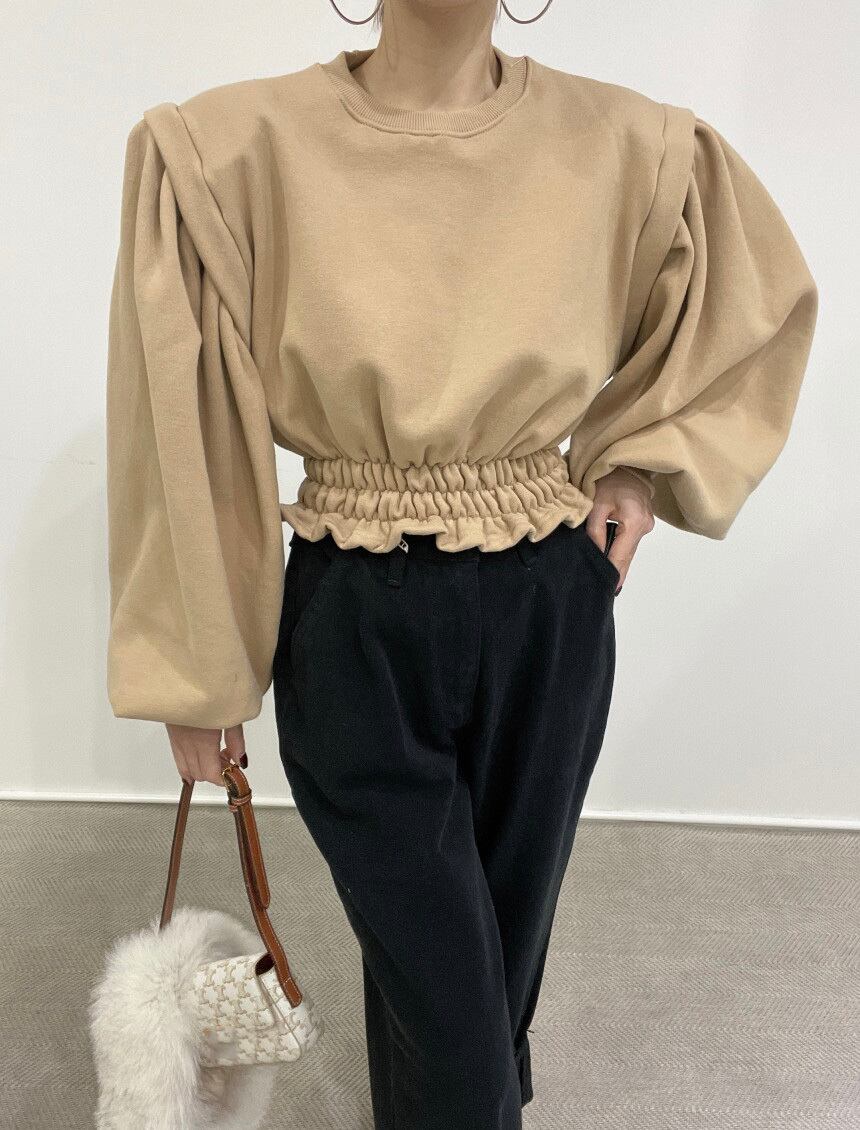 【韓国ファッション】大人可愛い オータムウィンターラウンドネックプリーツウェストルーズショートソリッド カラースリーブカジュアルトップス ランタンスリーブ 秋物 冬物 Oネック ソリッドカラー ♡ 韓国54868847753 | パリジェンヌ、韓国系ファッション July