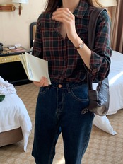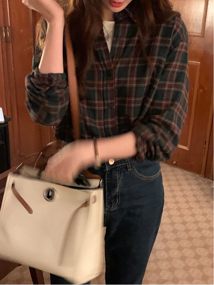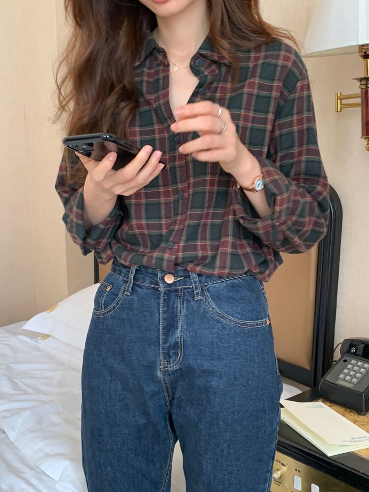 韓国服 グリーン格子柄シャツ オータムウィンタースタンダードスタイルジャケット ロング コットン レトロ 秋物 冬物 ♡ nanfeng83324938935 | パリジェンヌ、韓国系ファッション July