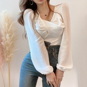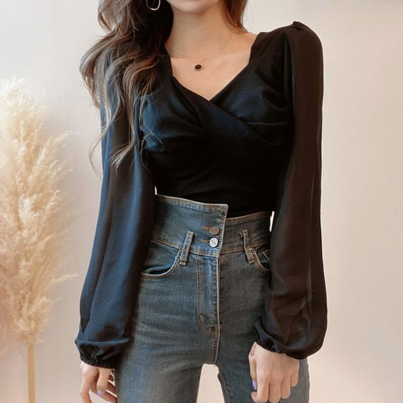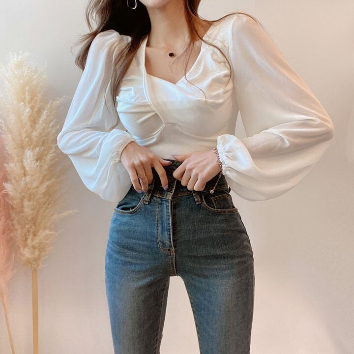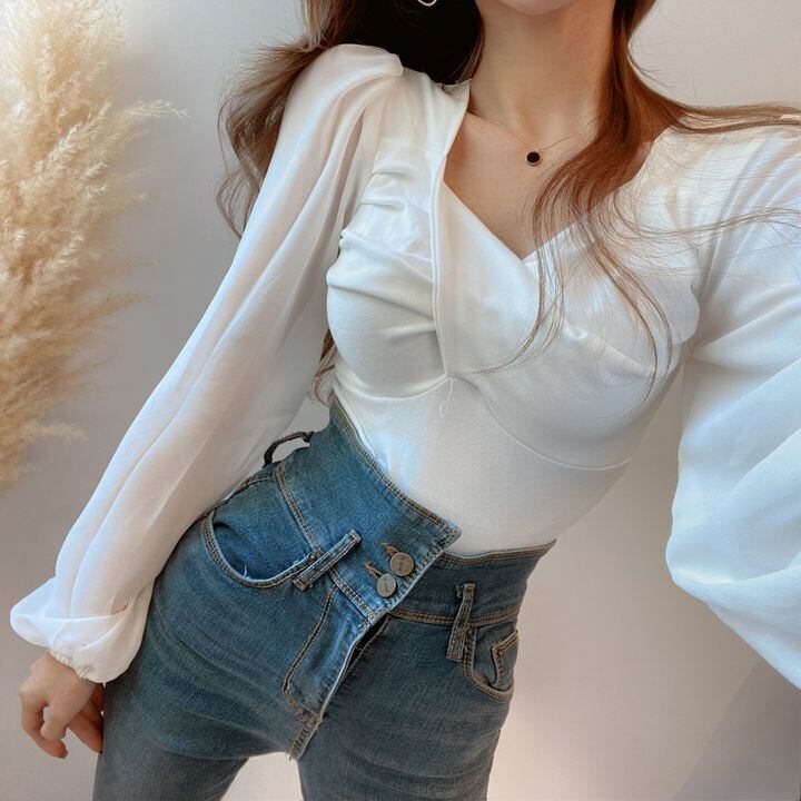 【韓国ファッション】大人可愛い Vネックプリーツウェストメッシュスリーブシャツ トップス ランタンスリーブ エレガント ステッチ ♡ 韓国69718590992 | パリジェンヌ、韓国系ファッション July