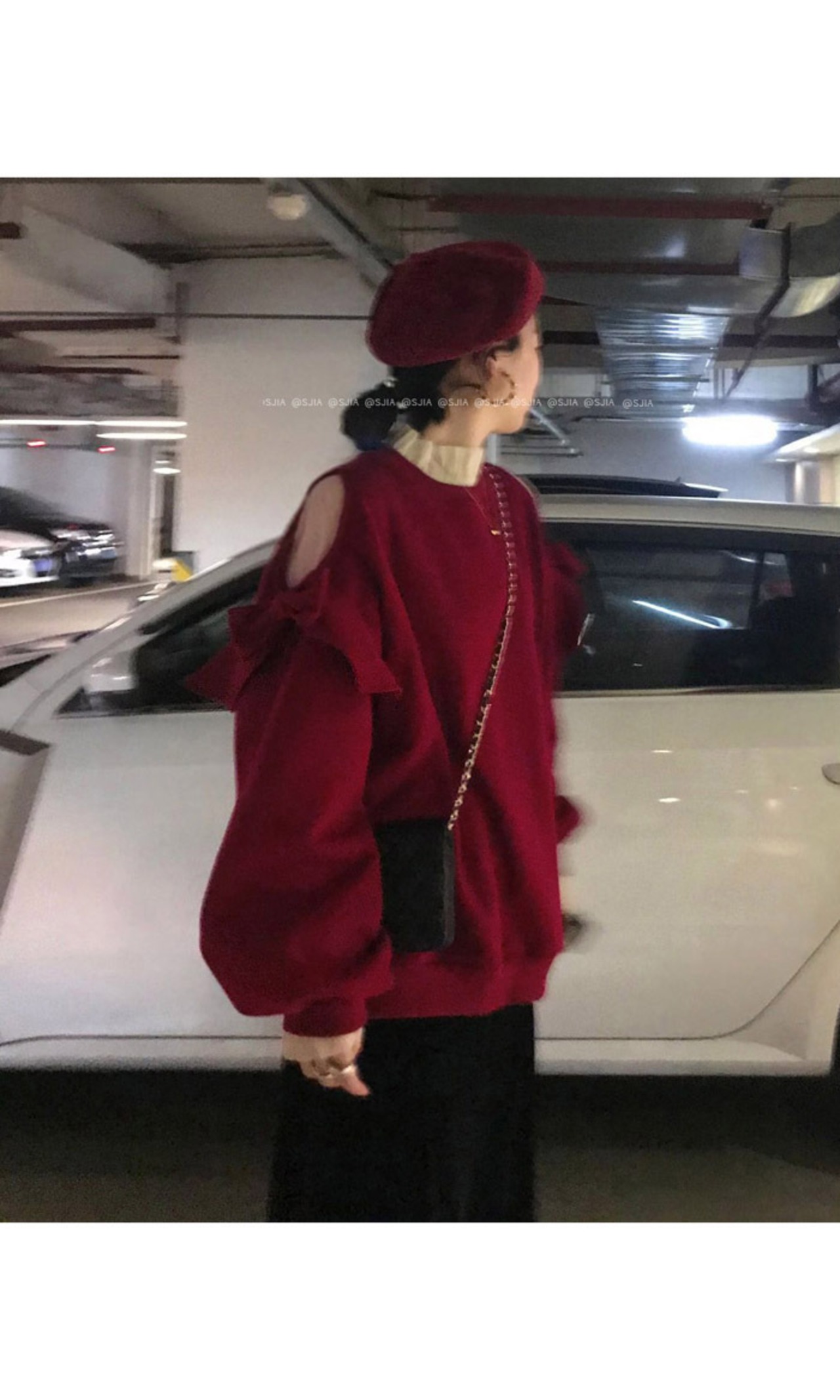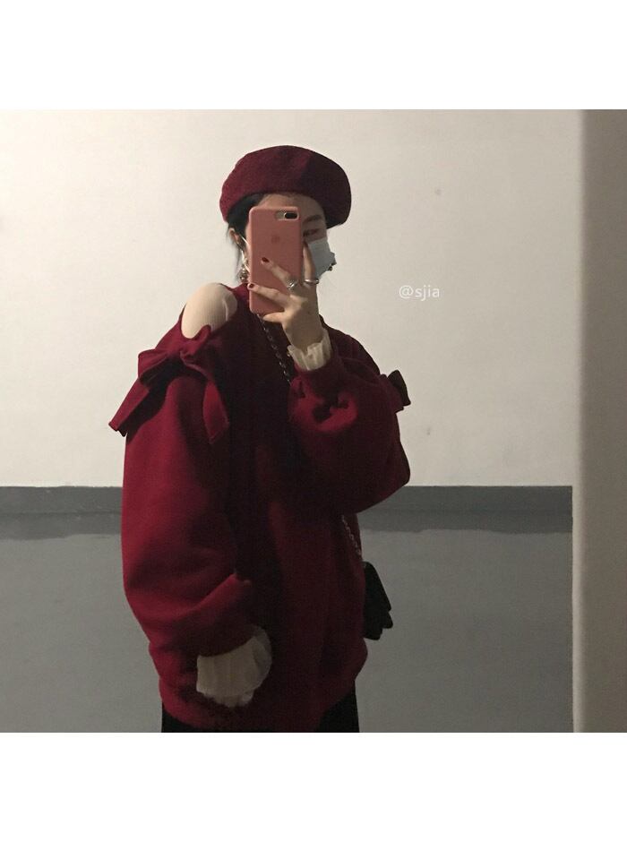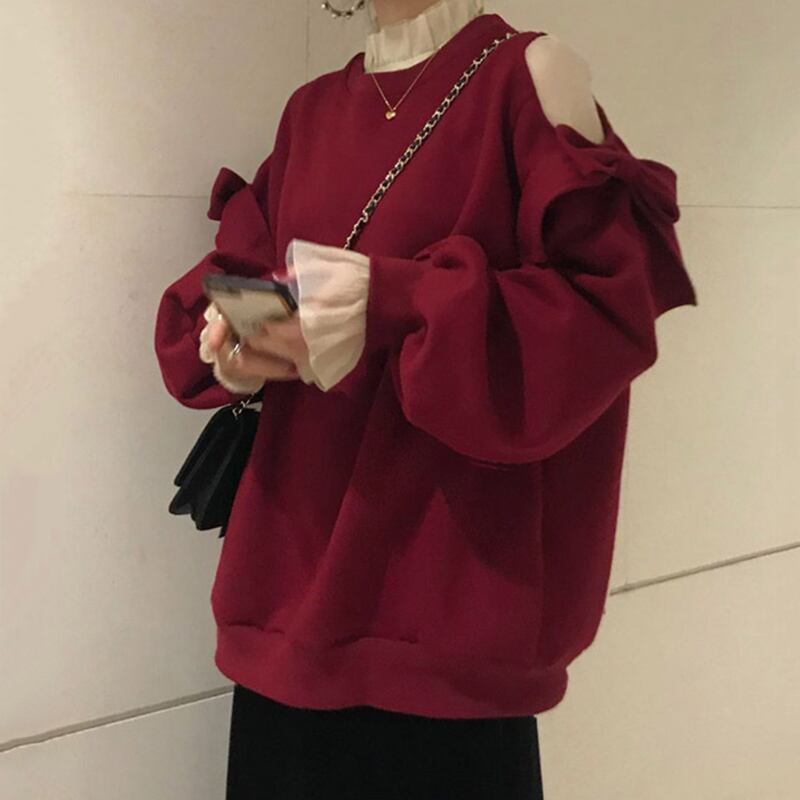 【韓国ファッション】大人可愛い ウィンタースタイルラウンドネックストラップレスリボンルーズベルベットスリーブTシャツ 冬物 Oネック ♡ 韓国40430115694 | パリジェンヌ、韓国系ファッション July