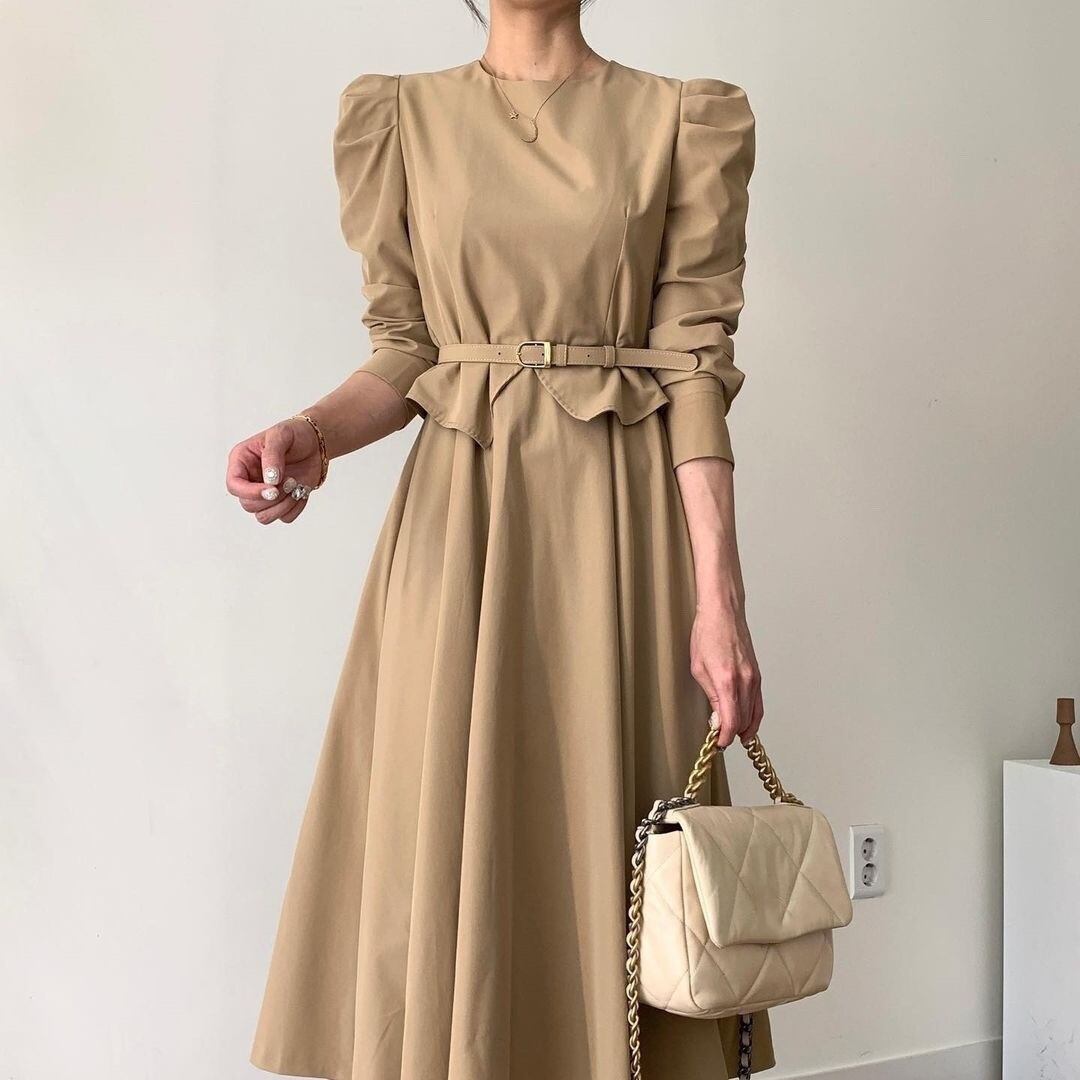 【韓国ファッション】大人可愛い オータムウィンターラウンドネックハイウェストウェストプリーツロングベルト 秋物 冬物 ハーネス Oネック ステッチ ♡ 韓国21753185087 | パリジェンヌ、韓国系ファッション July