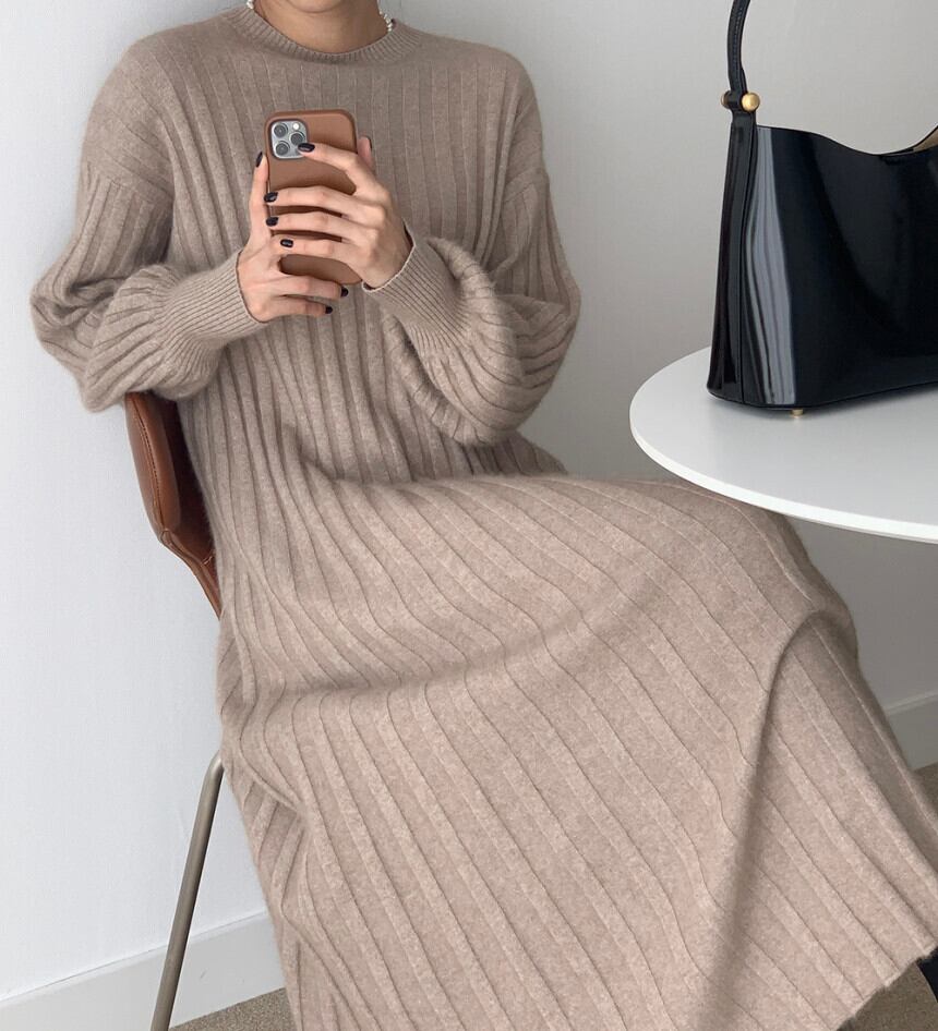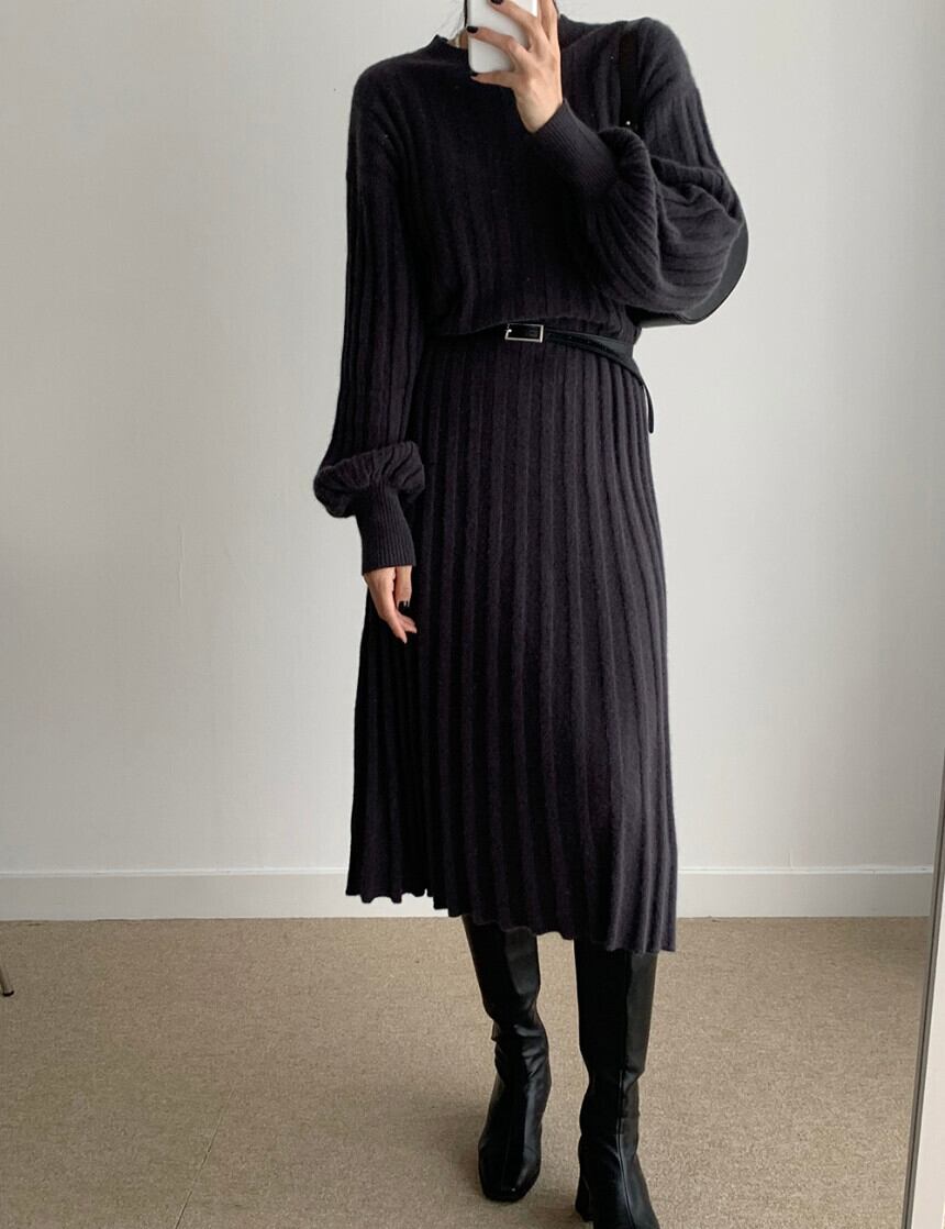 【韓国ファッション】大人可愛い ウィンタースタンダードラウンドネックストライプルーズソリッド カラーロングスリーブニットドレス ランタンスリーブ レトロ 冬物 Oネック ソリッドカラー ♡ 韓国39801436059 | パリジェンヌ、韓国系ファッション July