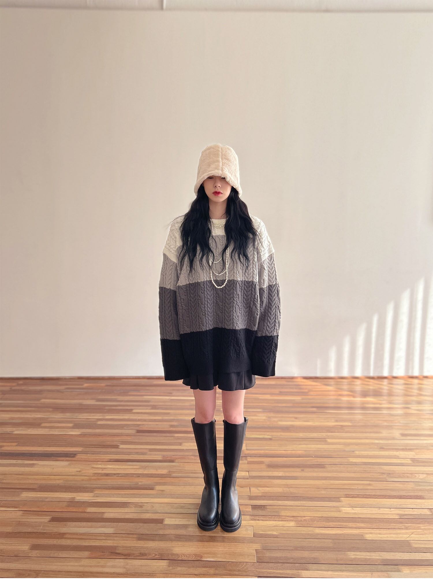 【韓国ファッション】大人可愛い オータムウィンターラウンドネックパターンカラーストライププルオーバー ルーズニットセーター レディース ロング 秋物 冬物 Oネック ♡ 韓国62193598646 | パリジェンヌ、韓国系ファッション July