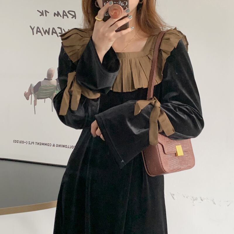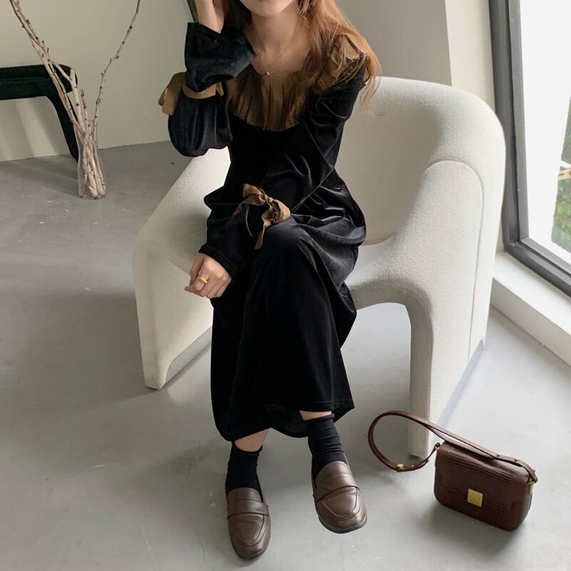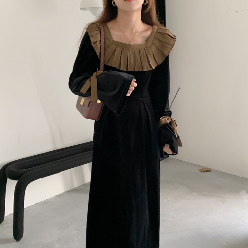 【韓国ファッション】大人可愛い カラープリーツハイウェストウェスト薄手ベルベットドレス レディース ロング スクウェア ステッチ ♡ 韓国42300254456 | パリジェンヌ、韓国系ファッション July