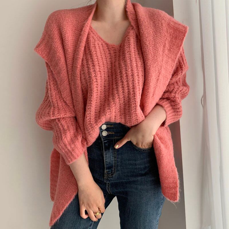 色:青いショール,ベージュのショール,ウエストレッドショール,青いセーター,ベージュのセーター,ウエストレッドセーター