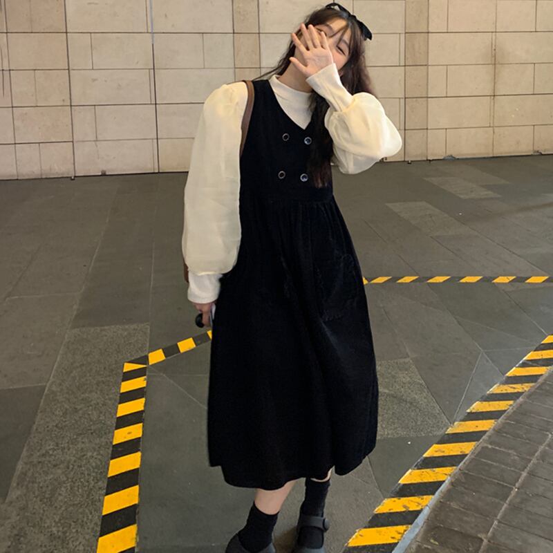 【韓国ファッション】大人可愛い ラウンドネックルーズスリーブシャツ ダブルブレストプリーツハイウェストウェストポケットスカート ランタンスリーブ Oネック ♡ 韓国33320119236 | パリジェンヌ、韓国系ファッション July