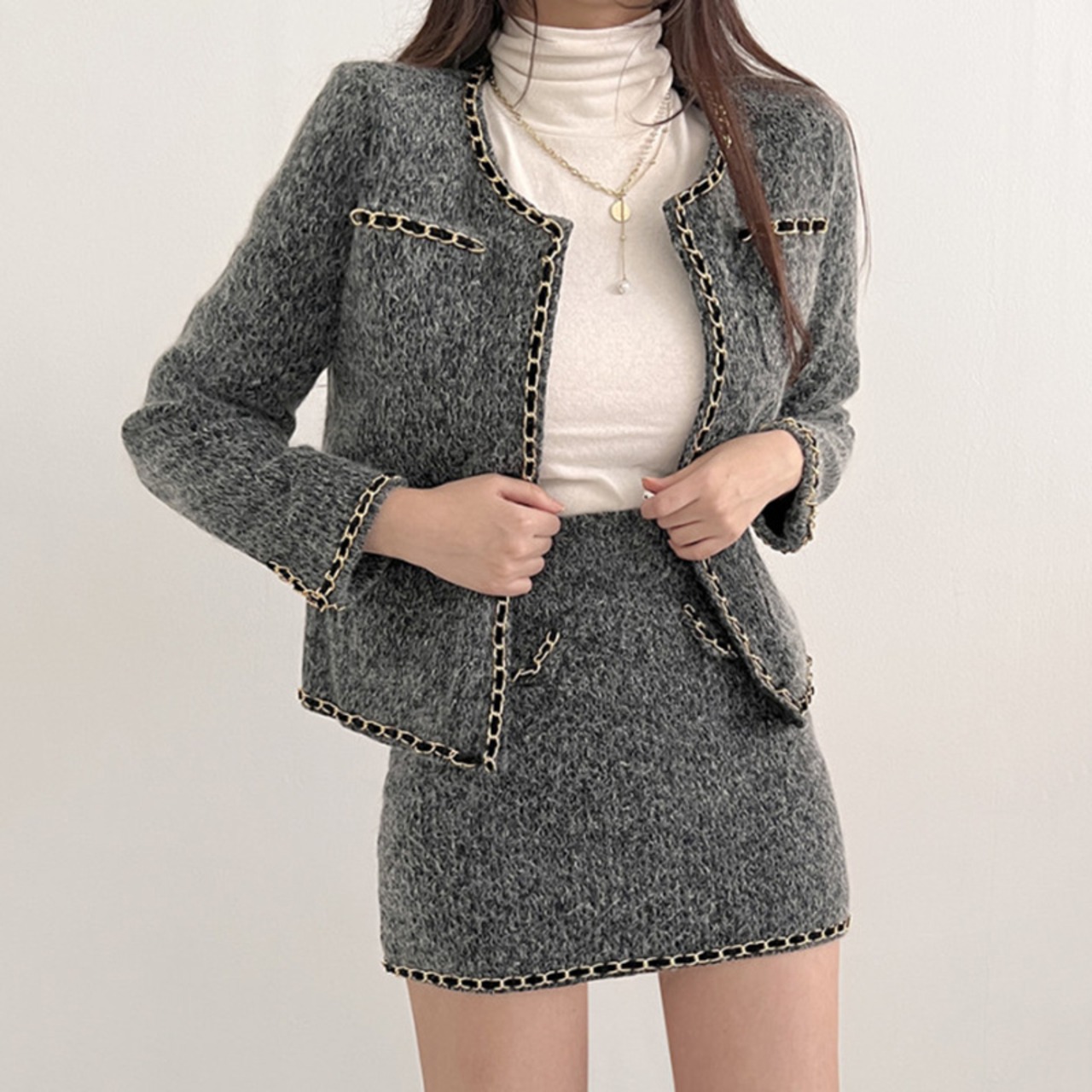【韓国ファッション】大人可愛い ラウンドネックストライプポケットルーズカーディガンジャケット ハイウェストウェストスカート Oネック ♡ 韓国24843750260 | パリジェンヌ、韓国系ファッション July