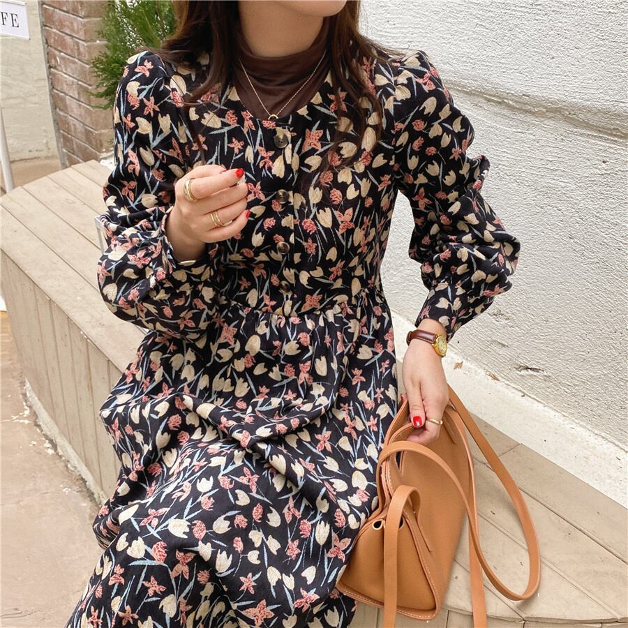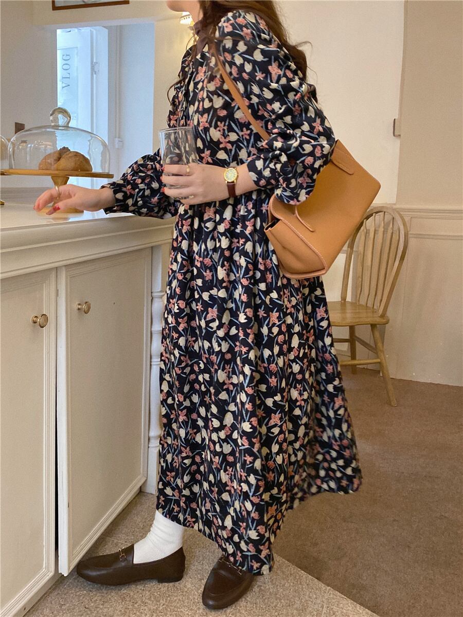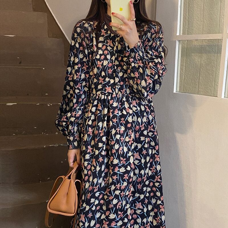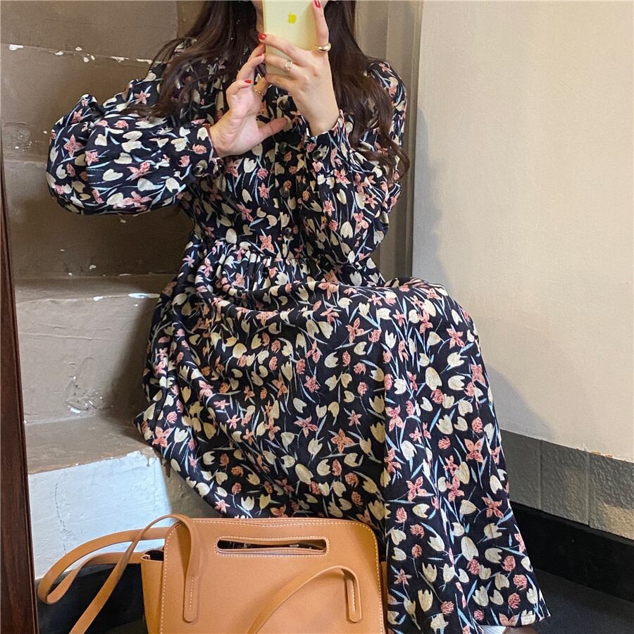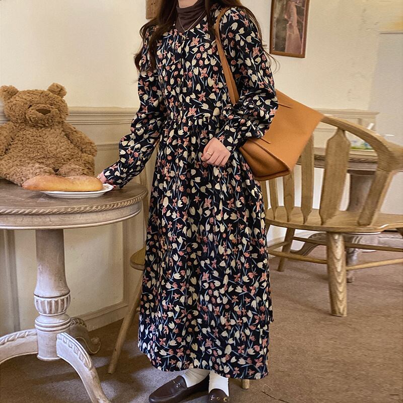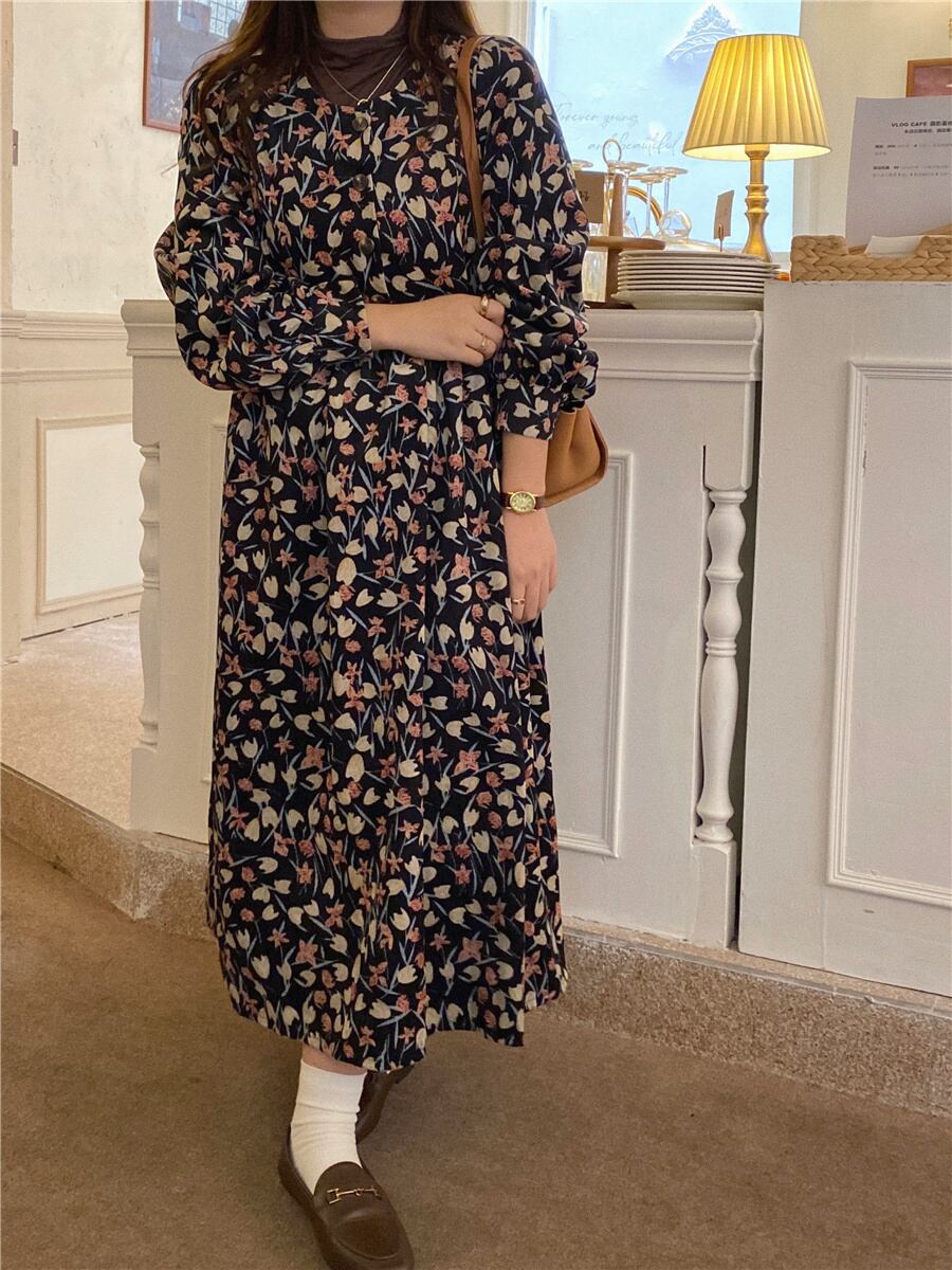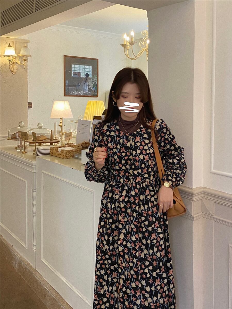 【韓国ファッション】大人可愛い スタイルスタンダードラウンドネックフローラルプリーツウェストロングスリーブドレス レディース レトロ レース 花柄 Oネック レースアップ ♡ 韓国733459070 | パリジェンヌ、韓国系ファッション July