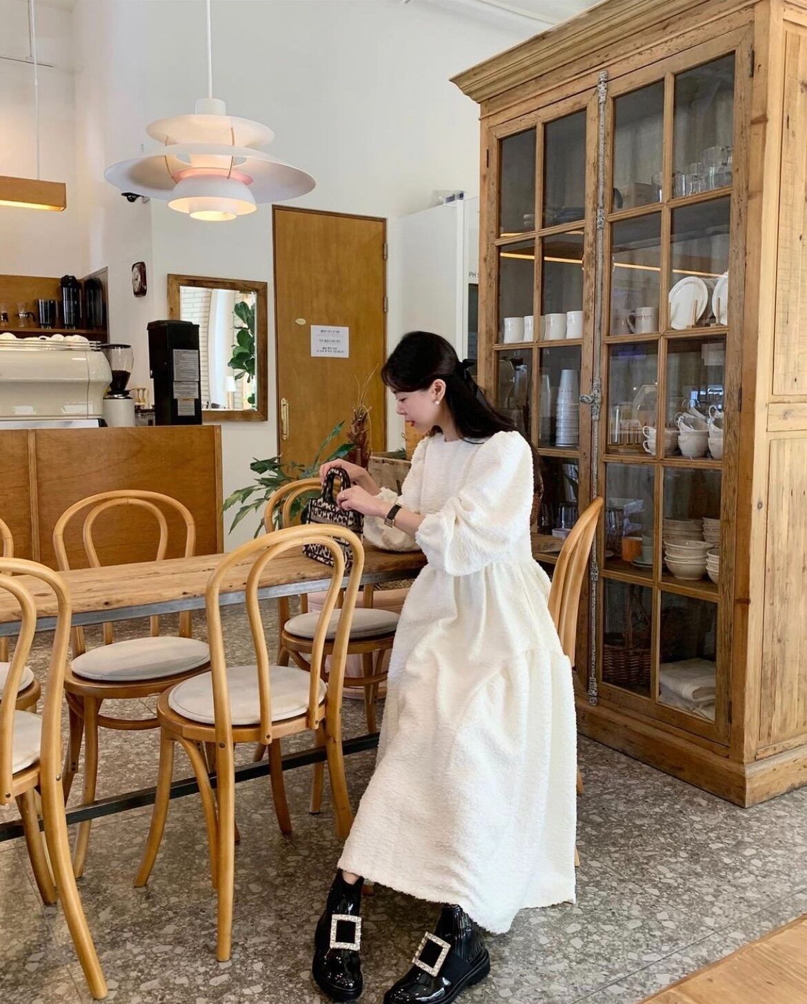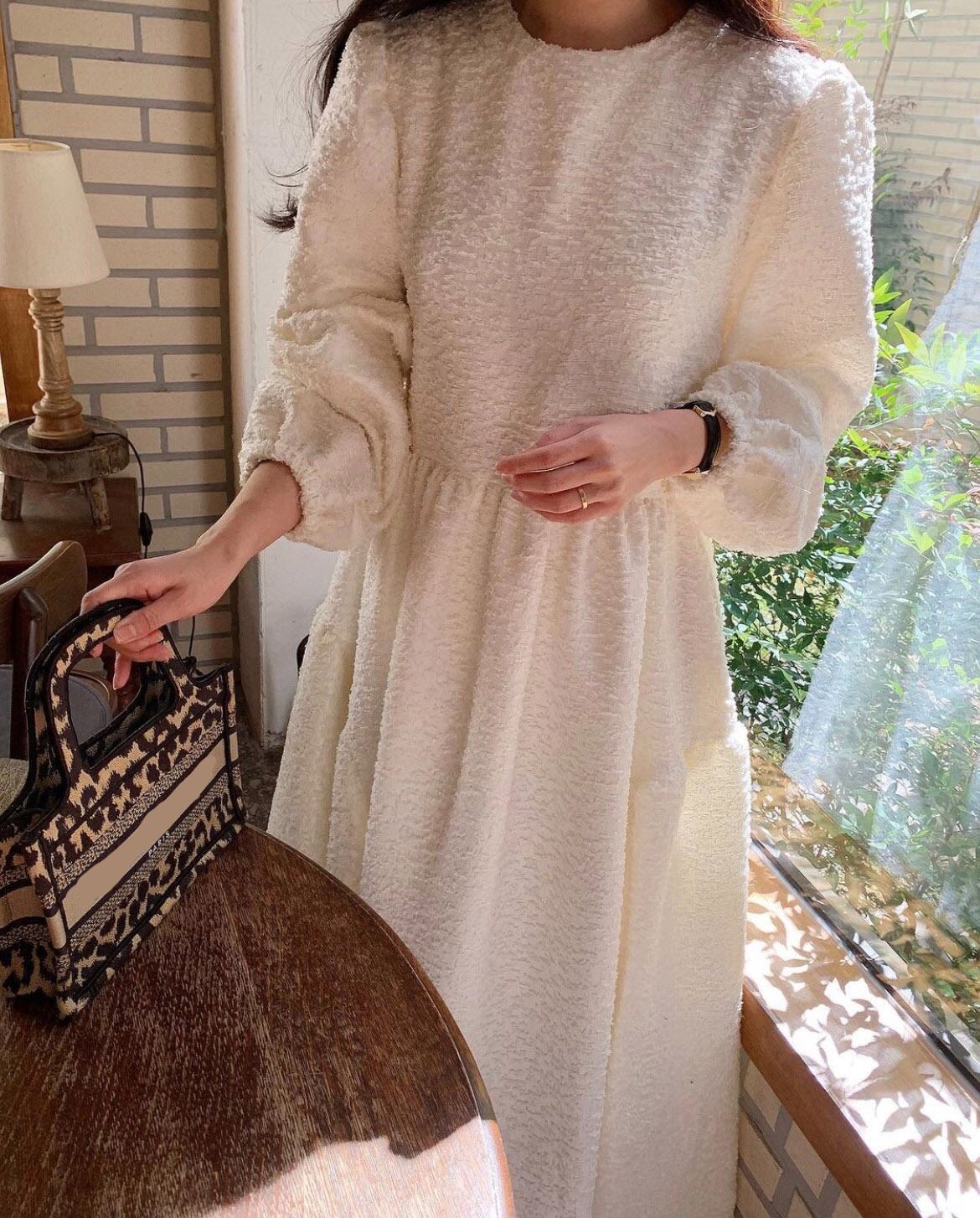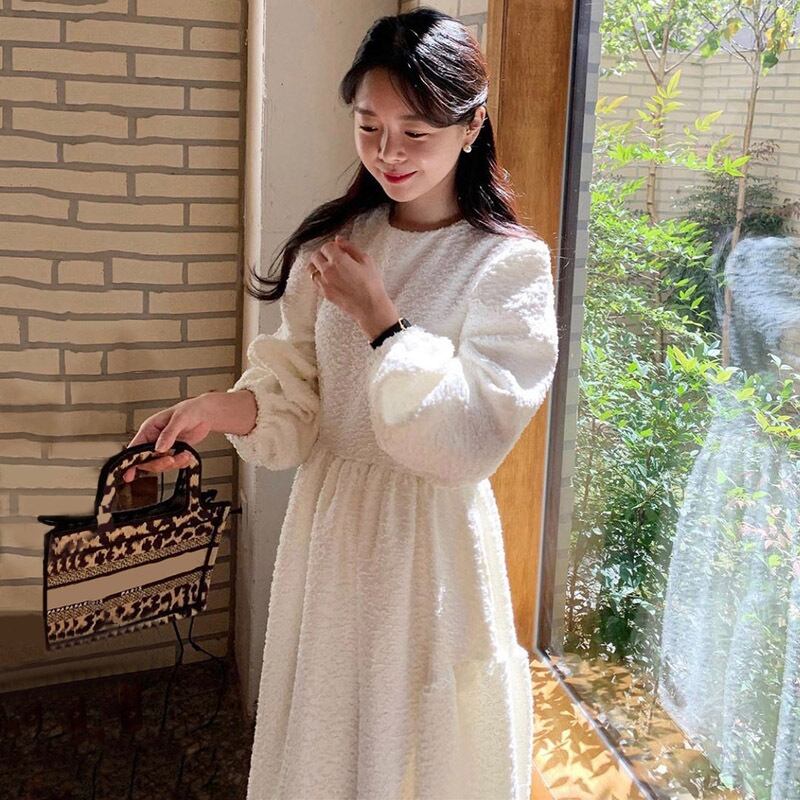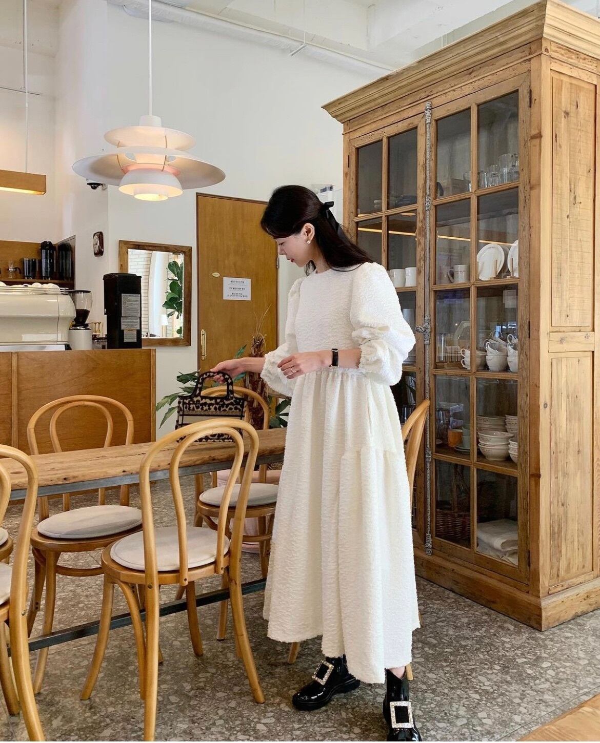 【韓国ファッション】大人可愛い ラウンドネックプリーツハイウェストウェストルーズロングスリーブドレス レディース 大人ガーリー スウィート キュート カジュアル Oネック ♡ 韓国97841711628 | パリジェンヌ、韓国系ファッション July