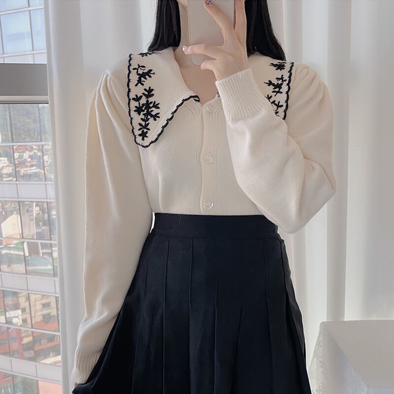 【韓国ファッション】大人可愛い オータムウィンター刺繍カラールーズショートニットカーディガンセーター レディース 秋物 冬物 ♡ 韓国96640485002 | パリジェンヌ、韓国系ファッション July