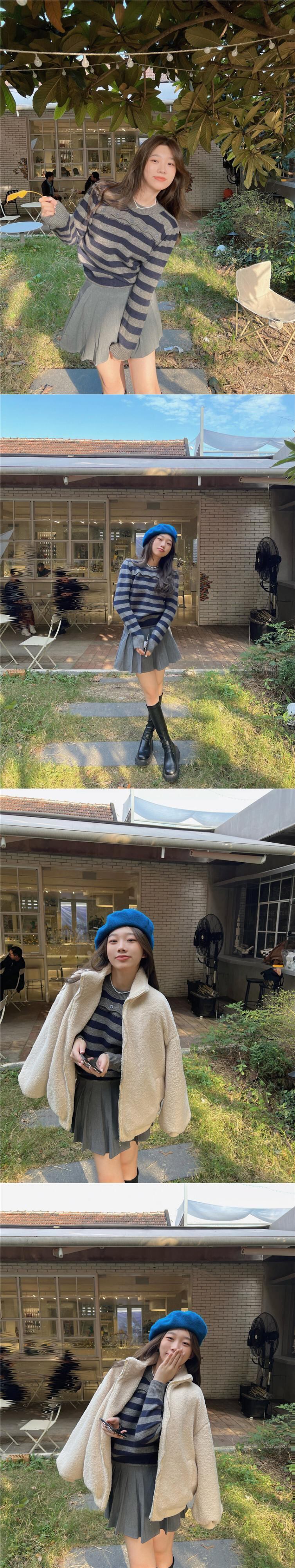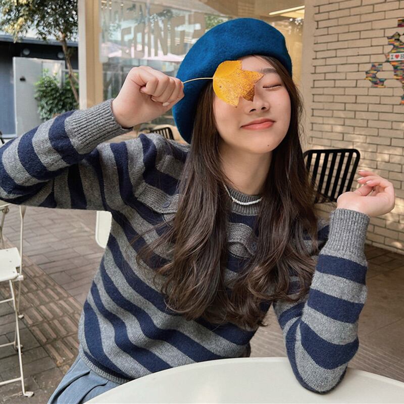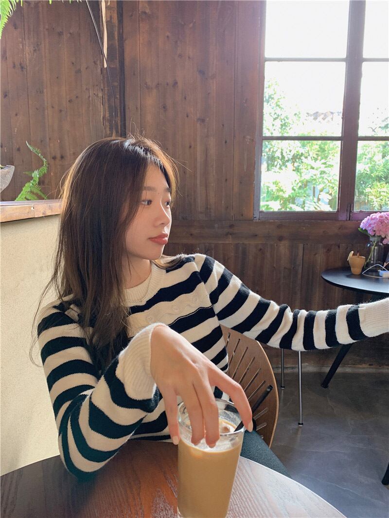 【韓国ファッション】大人可愛い オータムスタンダードラウンドネックバックルルーズカラーストライプニットセーター レディース ロング レトロ 秋物 Oネック ♡ 韓国21518552631 | パリジェンヌ、韓国系ファッション July