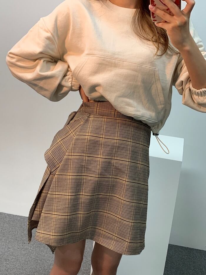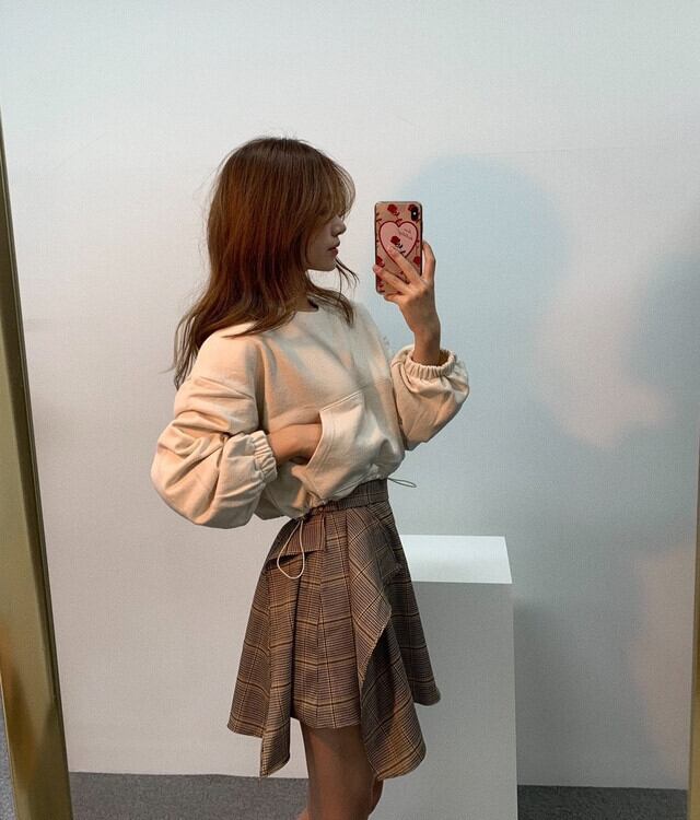 【韓国ファッション】大人可愛い ラウンドネックポケットルーズギャザーショートセーター ハイウェストウェスト格子柄スカート Oネック ♡ 韓国50463545789 | パリジェンヌ、韓国系ファッション July
