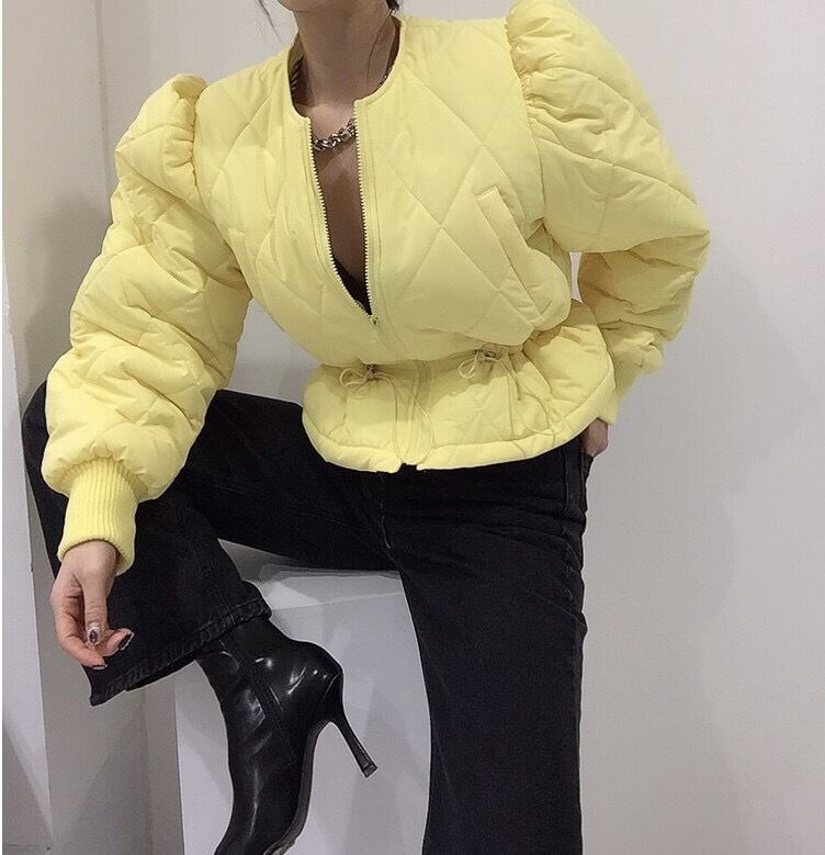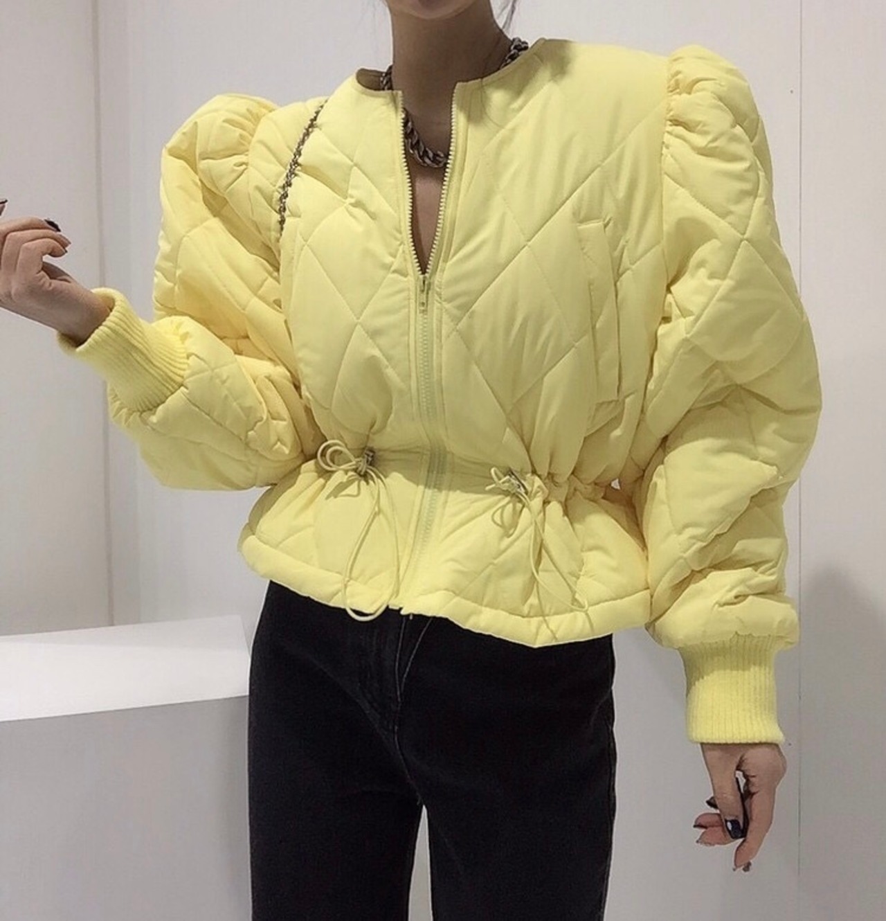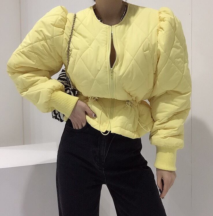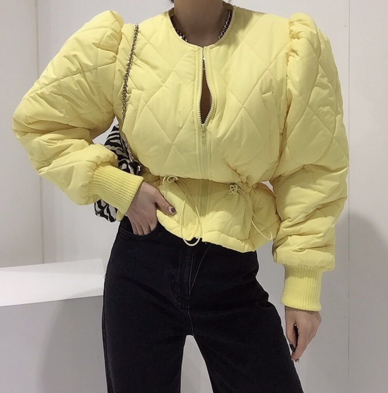 【韓国ファッション】大人可愛い ウィンターラウンドネックジッパーギャザーウェストジャケット レディース コットン 冬物 Oネック ♡ 韓国49394889908 | パリジェンヌ、韓国系ファッション July
