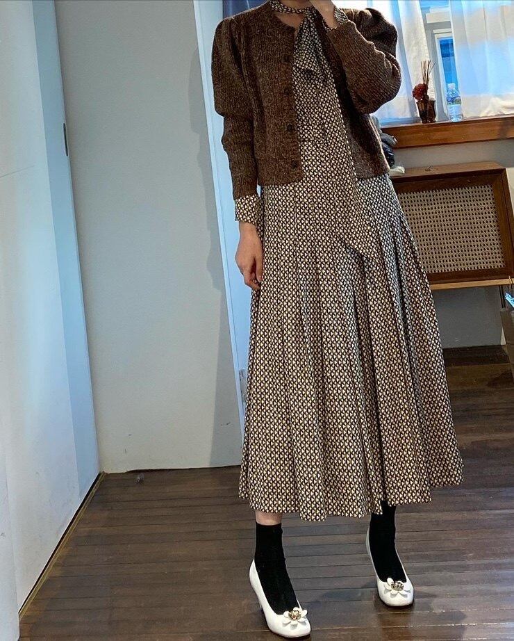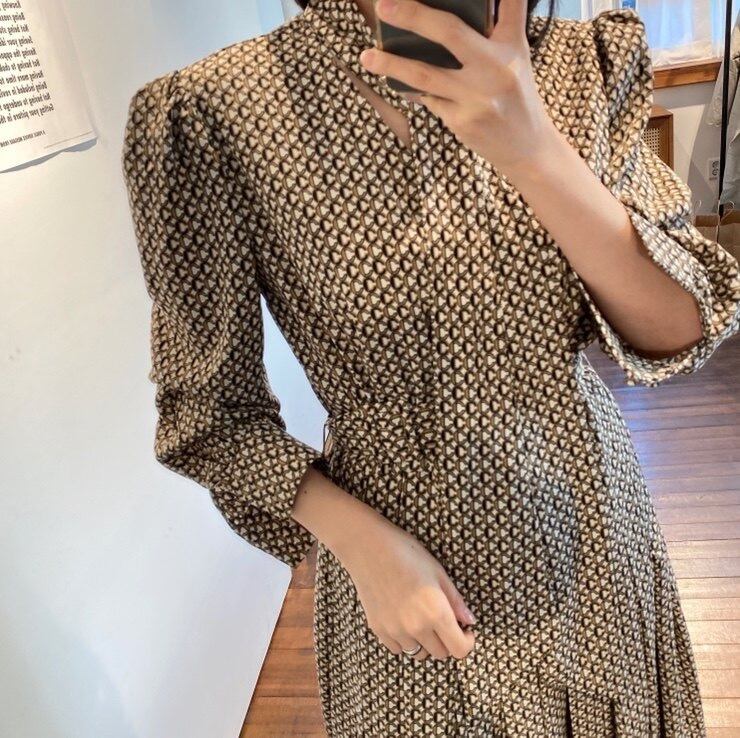 【韓国ファッション】大人可愛い オータムスタンダードプリント柄ハイウェストウェストプリーツ長袖スリーブドレス ロング レトロ 秋物 ♡ 韓国75998256055 | パリジェンヌ、韓国系ファッション July