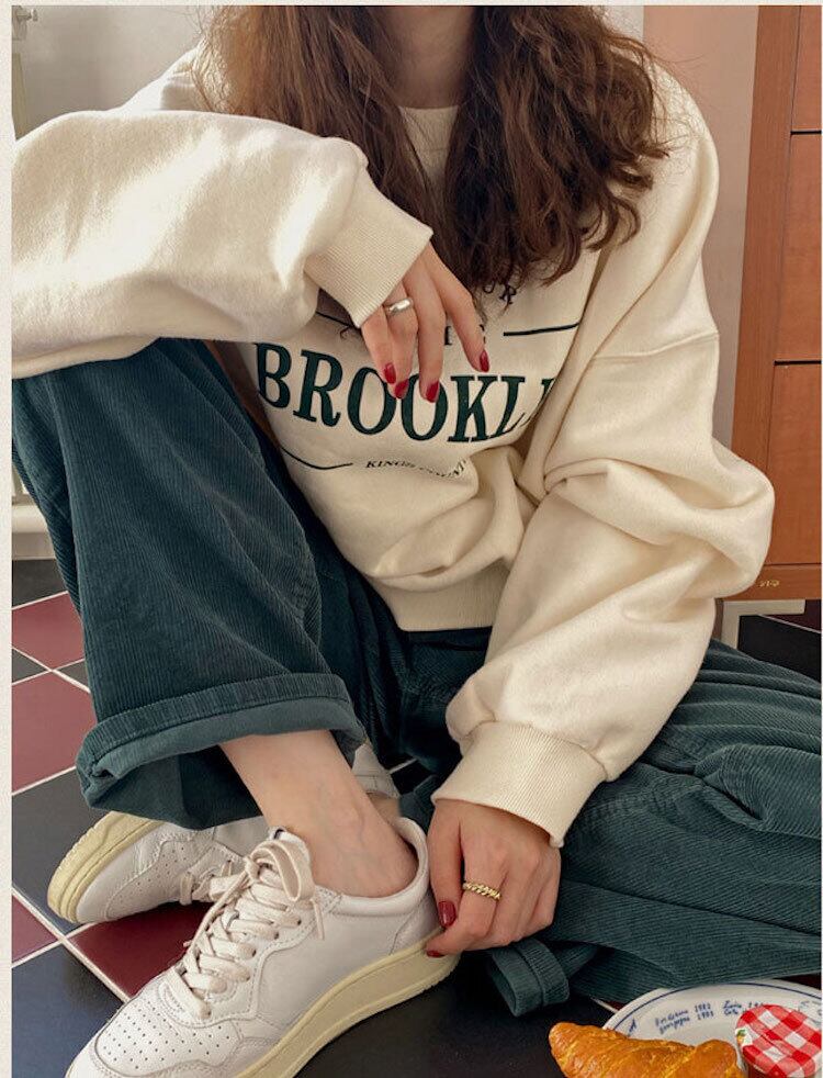 【韓国ファッション】大人可愛い オータムウィンターラウンドネックプルオーバー プリントルーズベルベットスリーブTシャツ レディース 秋物 冬物 Oネック ♡ 韓国35038086496 | パリジェンヌ、韓国系ファッション July