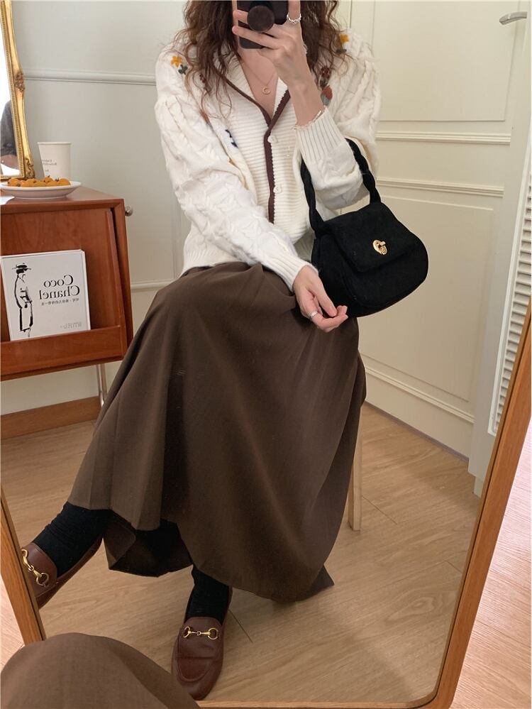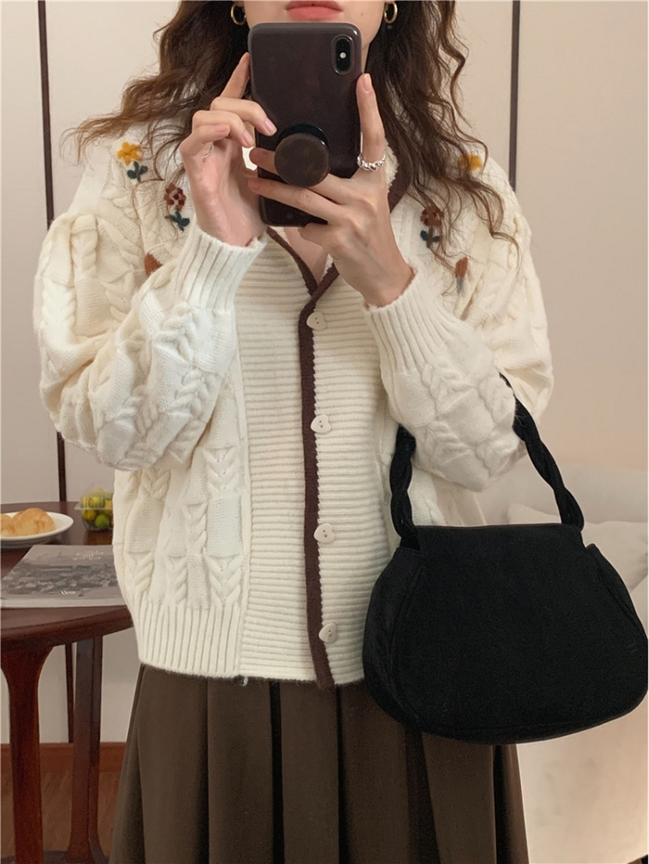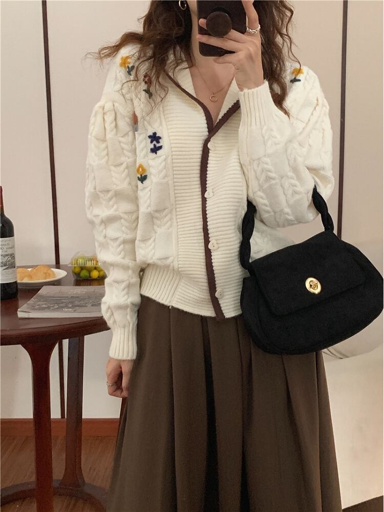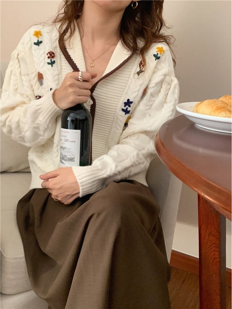 韓国服 スタンダードFlowerデザイン パターン長袖スリーブウールニットカーディガンルーズセーター ロング レトロ ウィンター 冬物 フラワーデザイン ♡ nanfeng73930886717 | パリジェンヌ、韓国系ファッション July