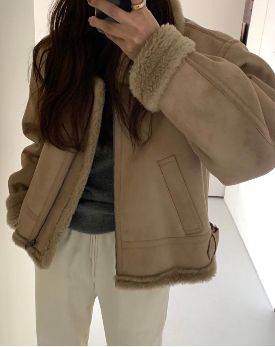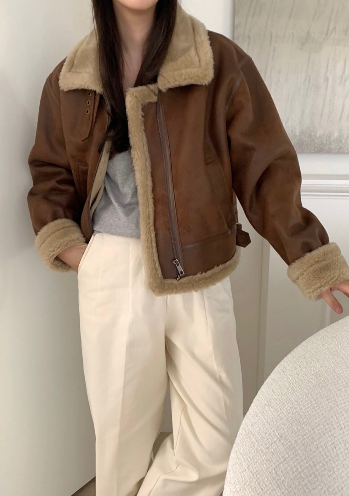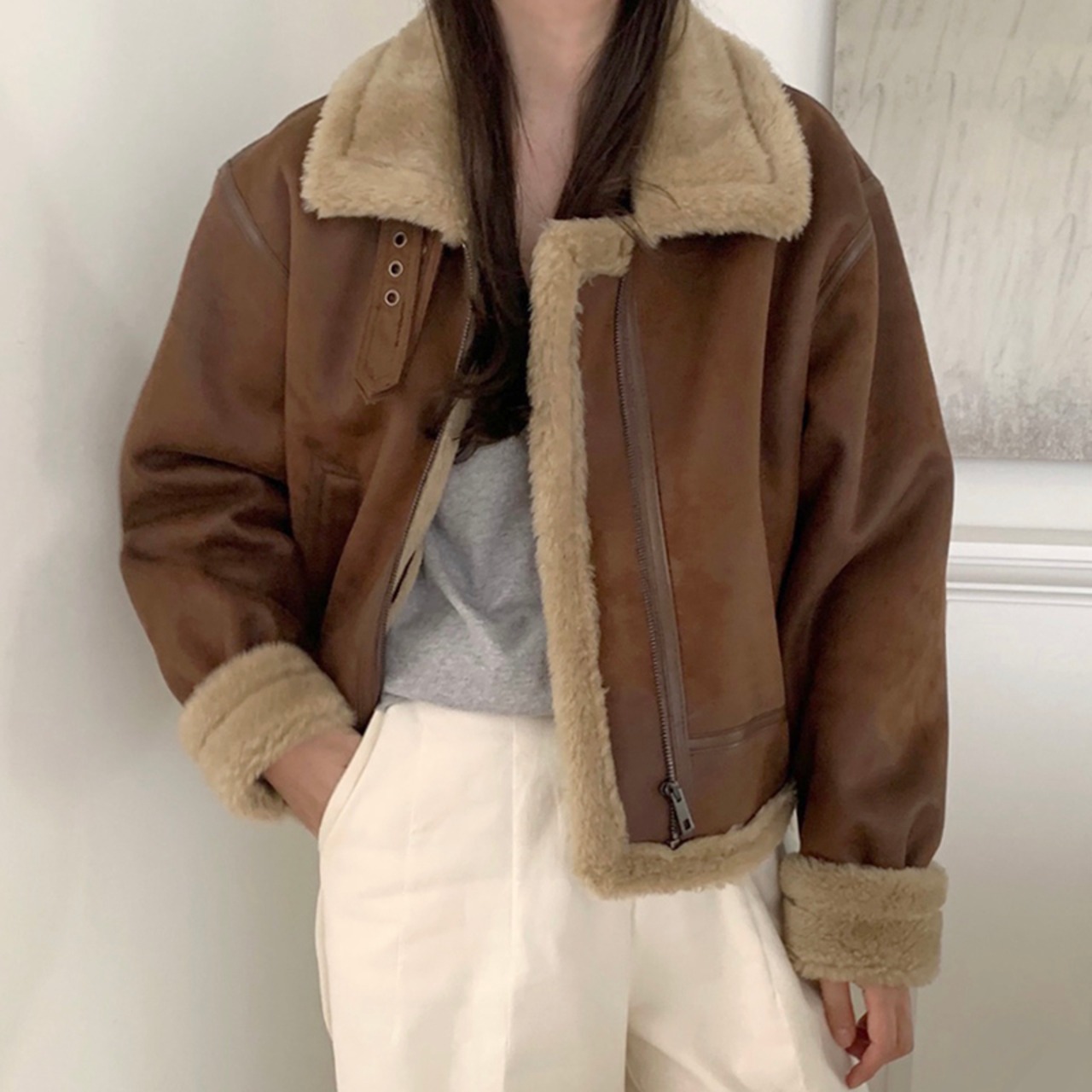 【韓国ファッション】大人可愛い ウィンタースタンダードジッパールーズファーレザージャケット ショートコート レトロ 冬物 ♡ 韓国33914620636 | パリジェンヌ、韓国系ファッション July