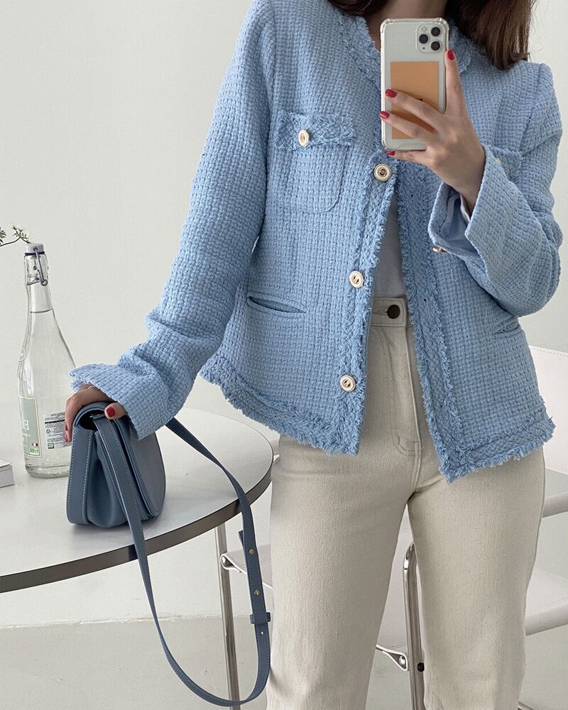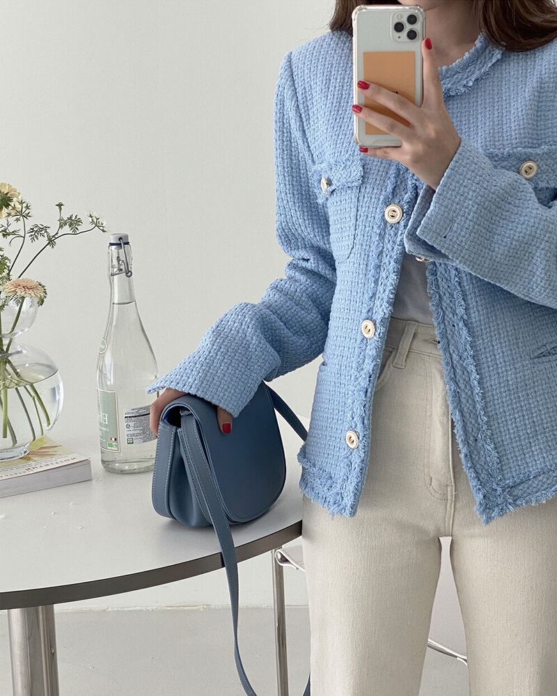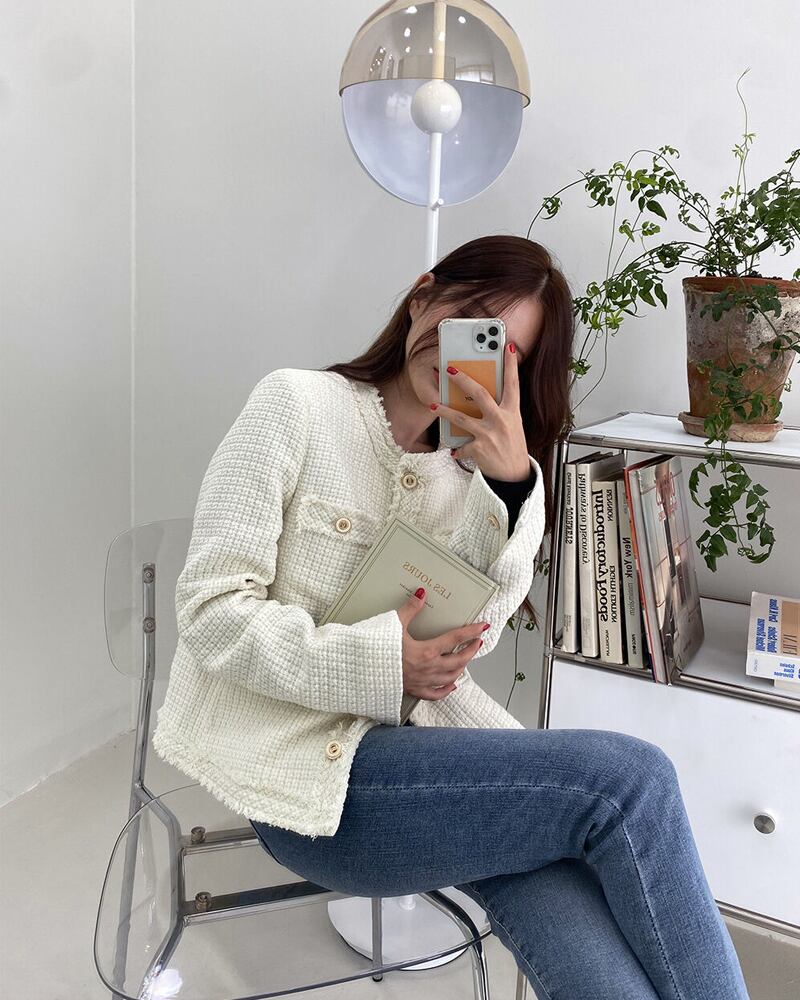 【韓国ファッション】大人可愛い オータムウィンターラウンドネックルーズツィードカーディガンジャケット レディース 秋物 冬物 Oネック ポケット多め マルチポケット ♡ 韓国14980377747 | パリジェンヌ、韓国系ファッション July