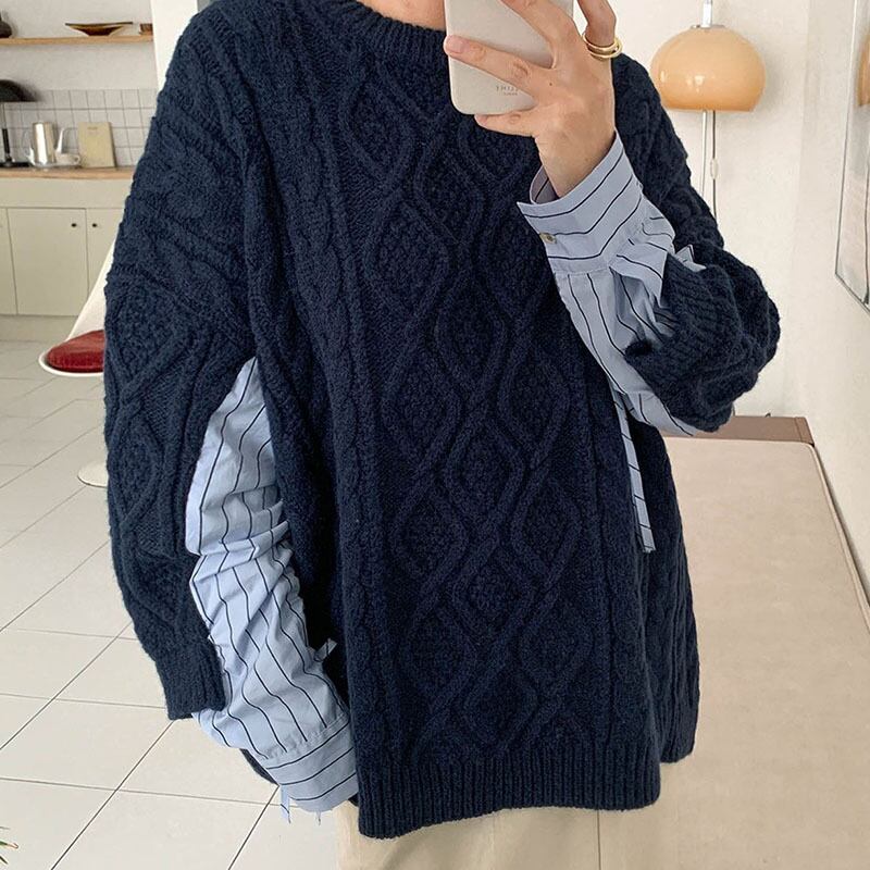【韓国ファッション】大人可愛い オータムウィンターラウンドネックストライプルーズパターンレースニットセーター レディース ロング 秋物 冬物 Oネック ステッチ ♡ 韓国71949777334 | パリジェンヌ、韓国系ファッション July