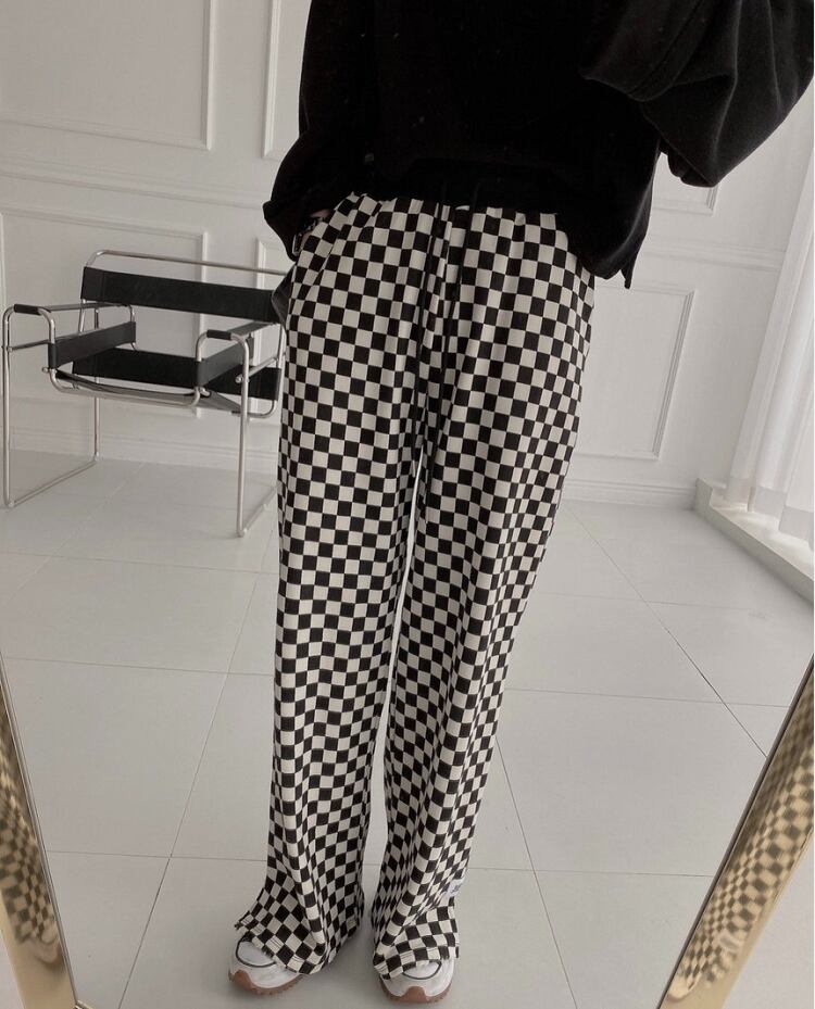 韓国服 オータムウィンターベルベットブラックホワイト格子柄カジュアルパンツ ルーズスタンダード レトロ 秋物 冬物 ♡ nanfeng12425372490 | パリジェンヌ、韓国系ファッション July