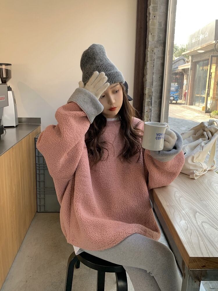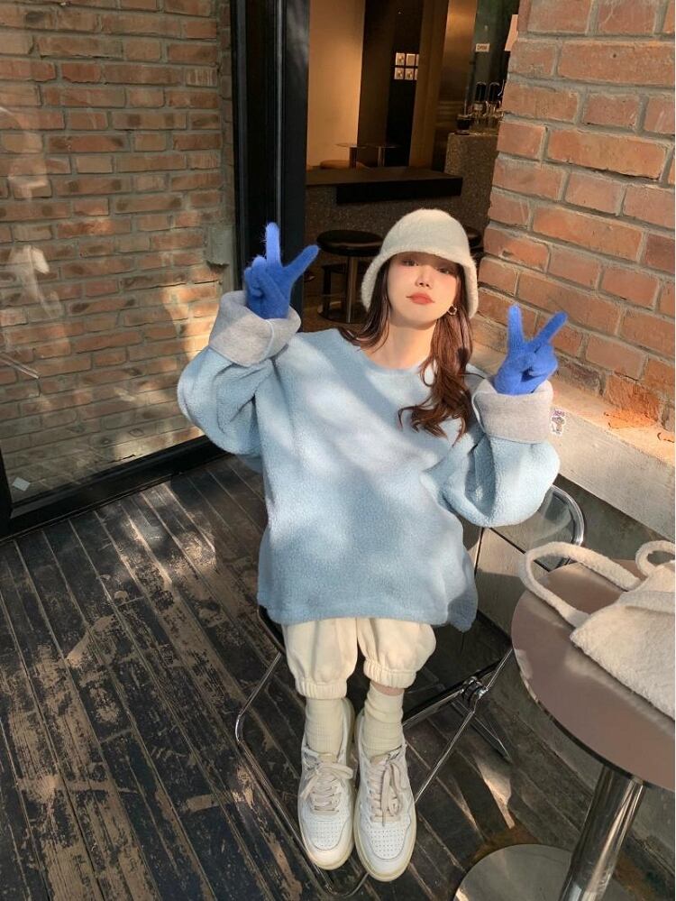 韓国服 セーター レディースオータムウィンタールーズベルベットフードラウンドネックジャケット 秋物 冬物 Oネック ♡ nanfeng63478784949 | パリジェンヌ、韓国系ファッション July