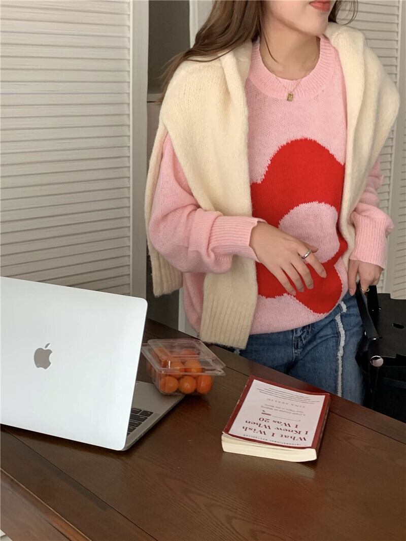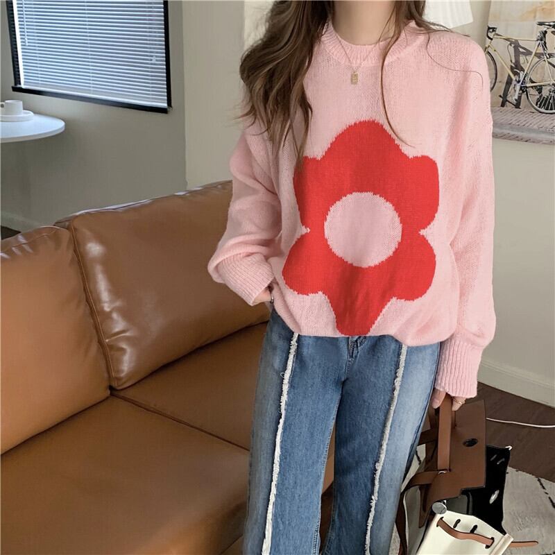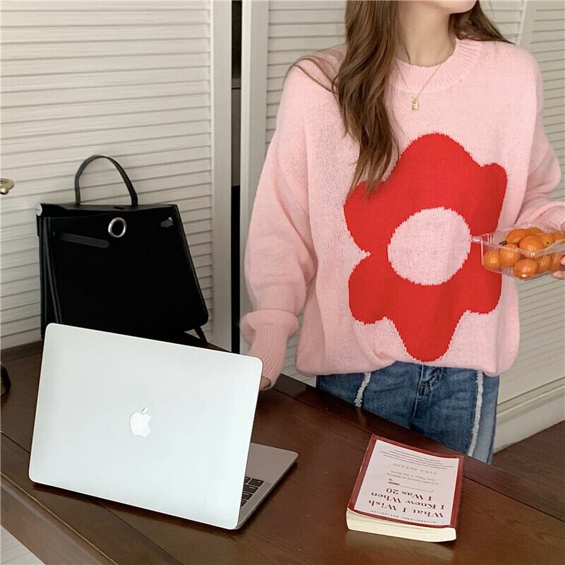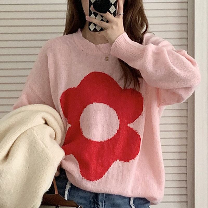 【韓国ファッション】大人可愛い ラウンドネックカラーFlowerデザイン プルオーバー ルーズセーター レディース ロング ピンク Oネック フラワーデザイン ♡ 韓国81689366293 | パリジェンヌ、韓国系ファッション July