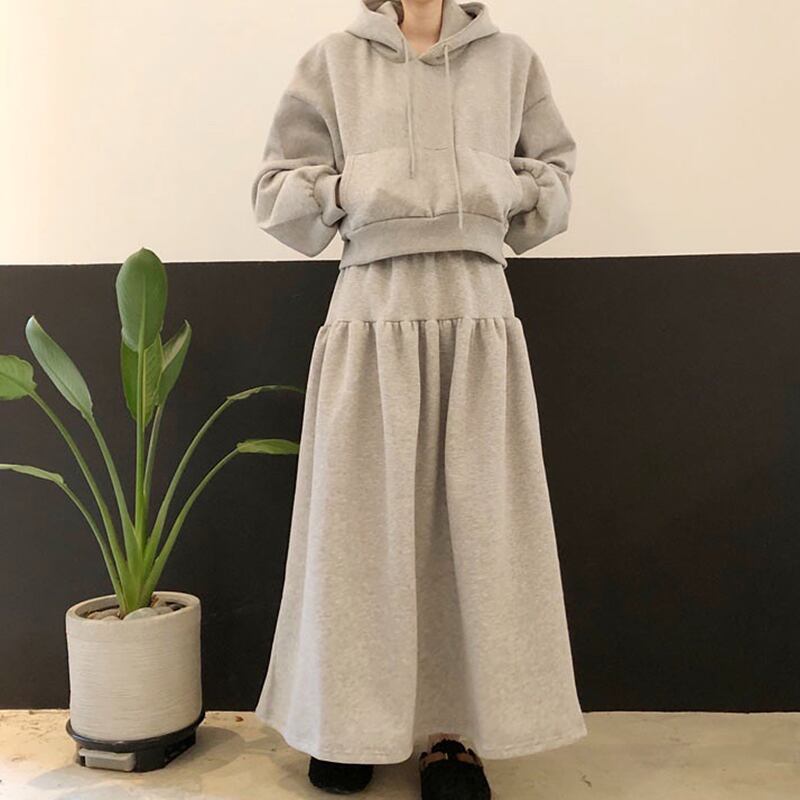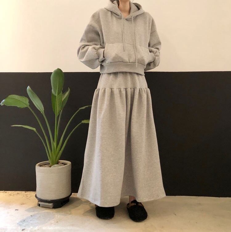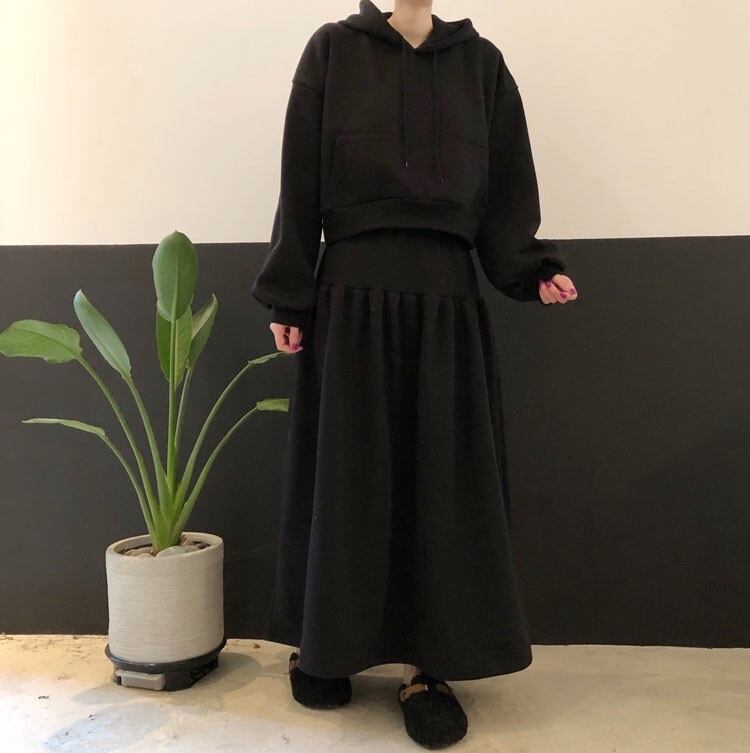 色:グレーの厚手のコットンT,黒厚綿T,白厚綿T,黒スカート,グレースカート,白いスカート