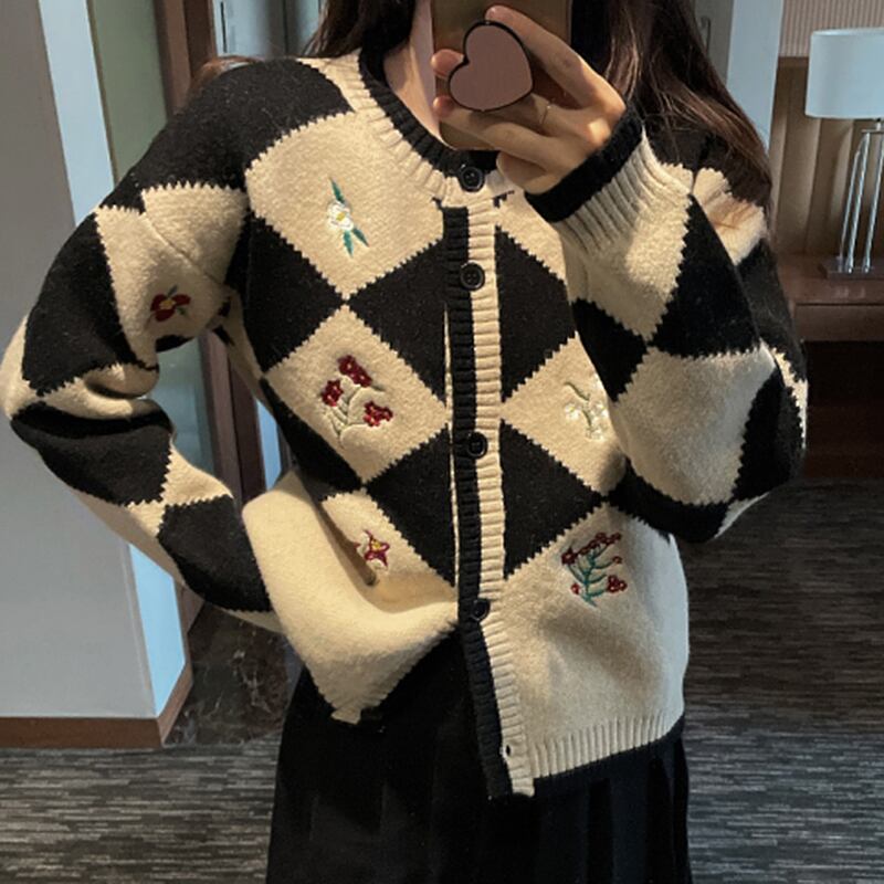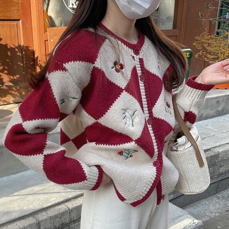 【韓国ファッション】大人可愛い スタンダードラウンドネックカラー刺繍ルーズニットカーディガンセーター レトロ Oネック フラワーデザイン ♡ 韓国20632658570 | パリジェンヌ、韓国系ファッション July