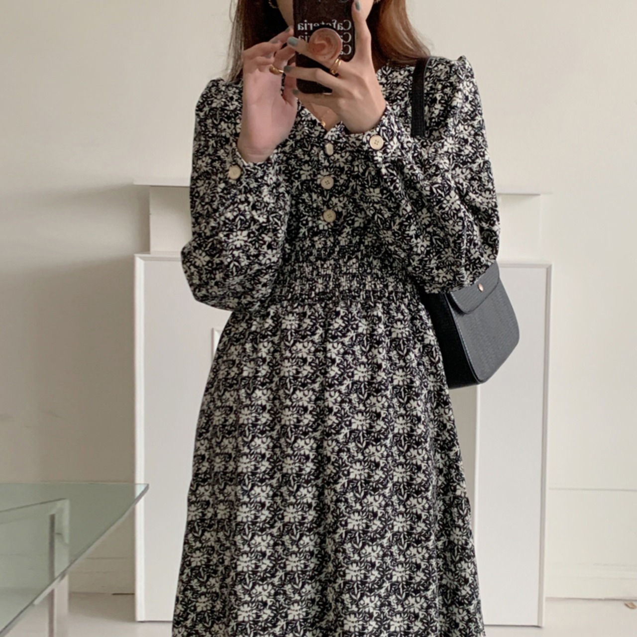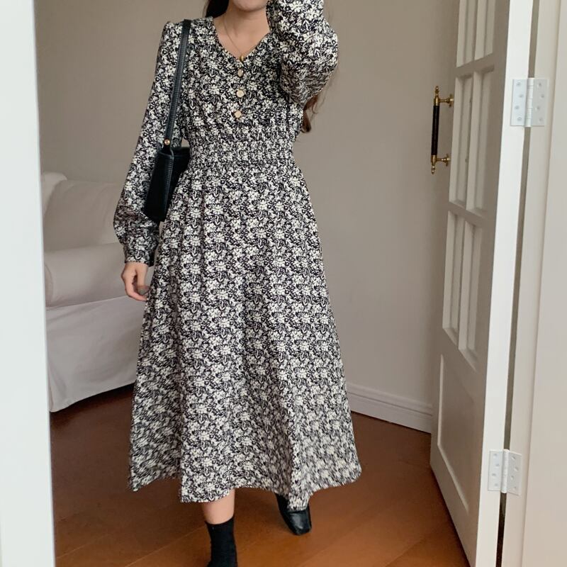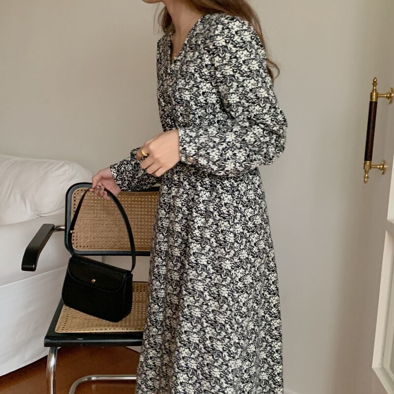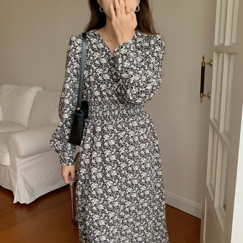 【韓国ファッション】大人可愛い スタンダード薄手Vネックフローラルストレッチハイウェストウェストロングスリーブドレス レディース レトロ エラスティック 伸縮 花柄 ♡ 韓国54205973988 | パリジェンヌ、韓国系ファッション July