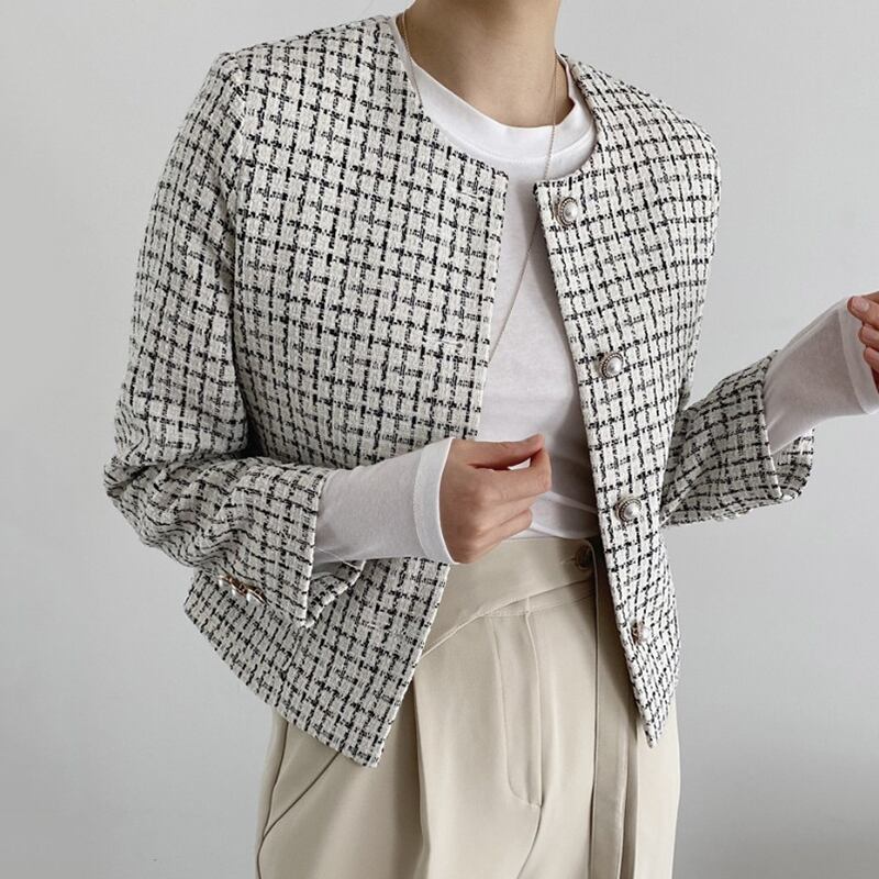 【韓国ファッション】大人可愛い オータムウィンターラウンドネックパールボタン格子柄ポケットルーズツィードカーディガンジャケット レディース 秋物 冬物 Oネック 真珠 ♡ 韓国7871989277 | パリジェンヌ、韓国系ファッション July
