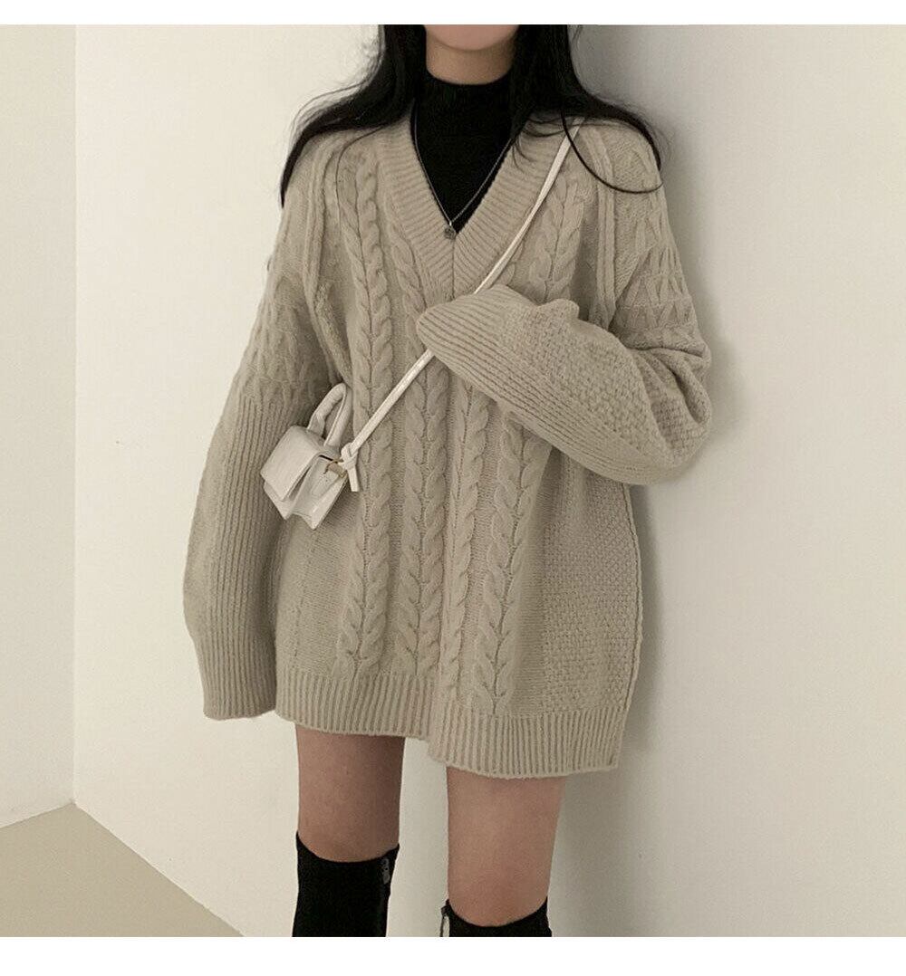 【韓国ファッション】大人可愛い オータムウィンタースタンダードスタイルVネックパターンプルオーバー ルーズソリッド カラーニットセーター ロング レトロ 秋物 冬物 ソリッドカラー ♡ 韓国64122055261 | パリジェンヌ、韓国系ファッション July