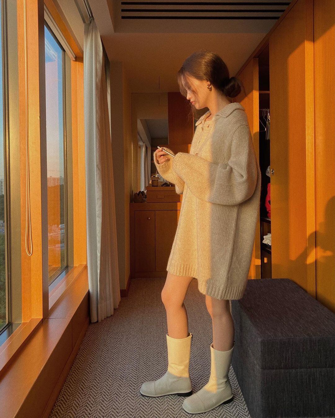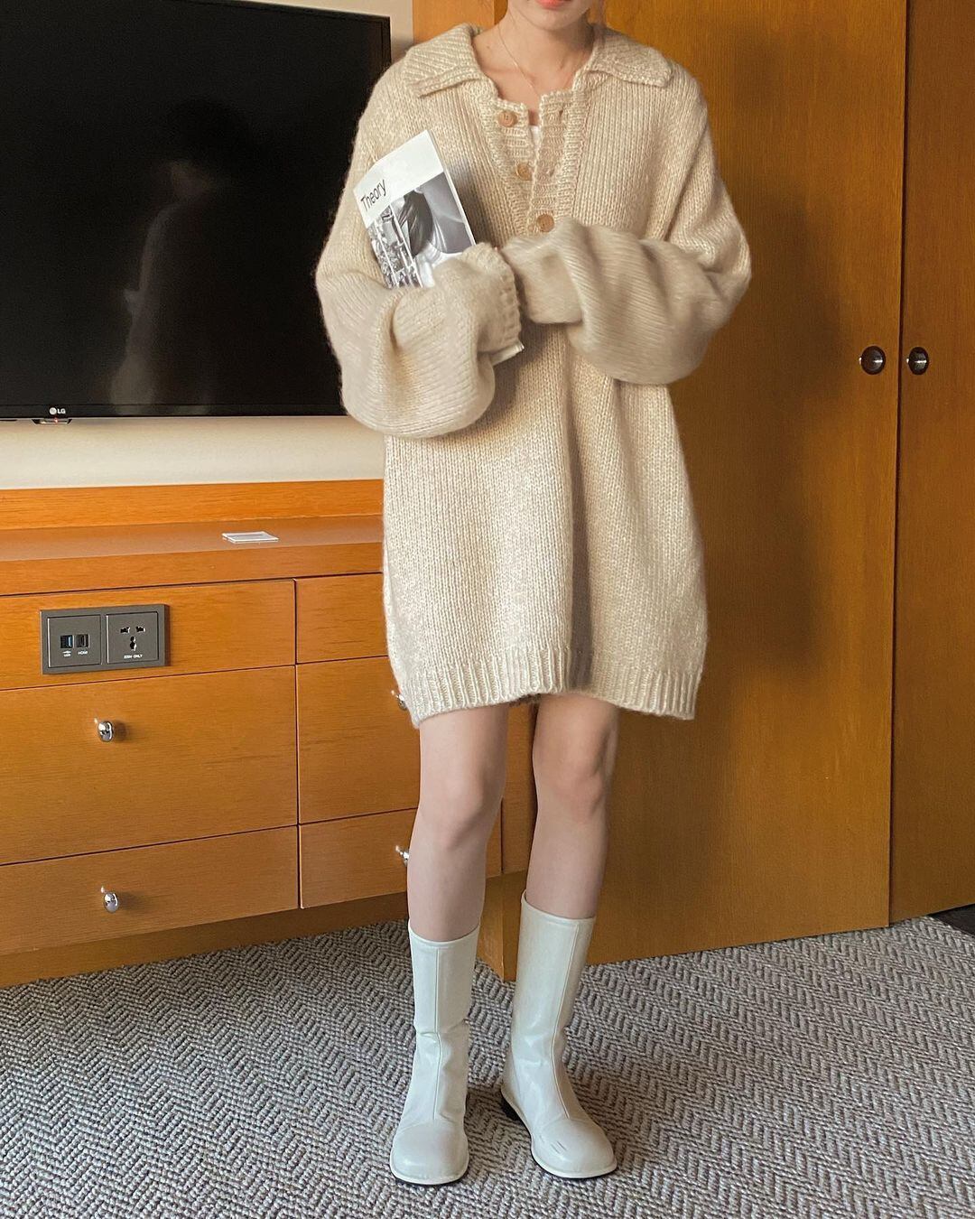 【韓国ファッション】大人可愛い スタンダードスタイルルーズカジュアルソリッド カラーニットドレス レディース レトロ ソリッドカラー ♡ 韓国47806020114 | パリジェンヌ、韓国系ファッション July