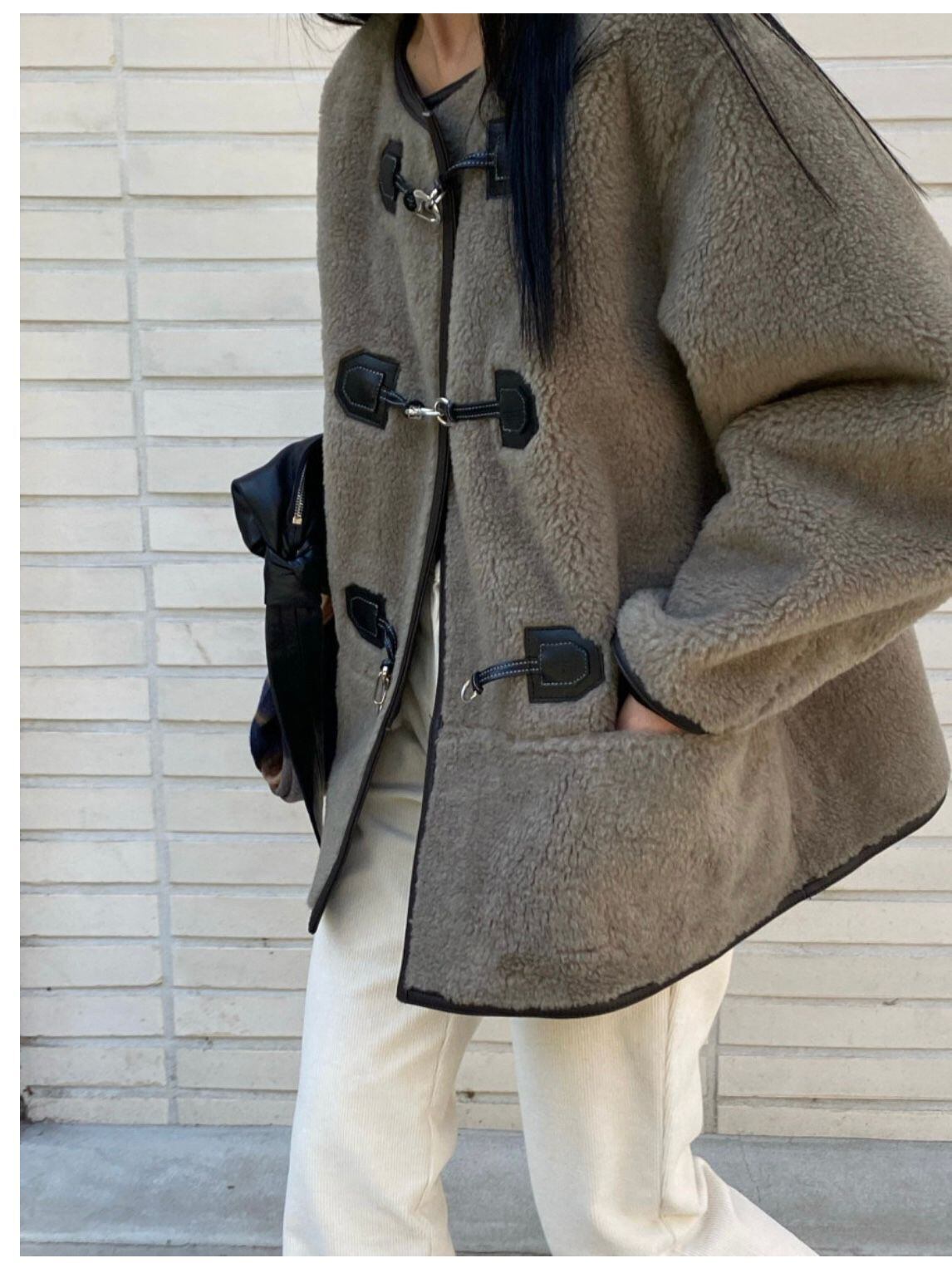【韓国ファッション】大人可愛い ウィンタースタンダードラウンドネックレザールーズウールショートコート レトロ 冬物 Oネック ステッチ ♡ 韓国88408447148 | パリジェンヌ、韓国系ファッション July