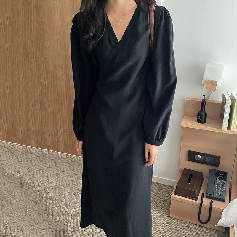 【韓国ファッション】大人可愛い オータムスタイル薄手Vネックサイドウェストソリッド カラーロングスリーブドレス 秋物 ソリッドカラー ♡ 韓国56989169816 | パリジェンヌ、韓国系ファッション July