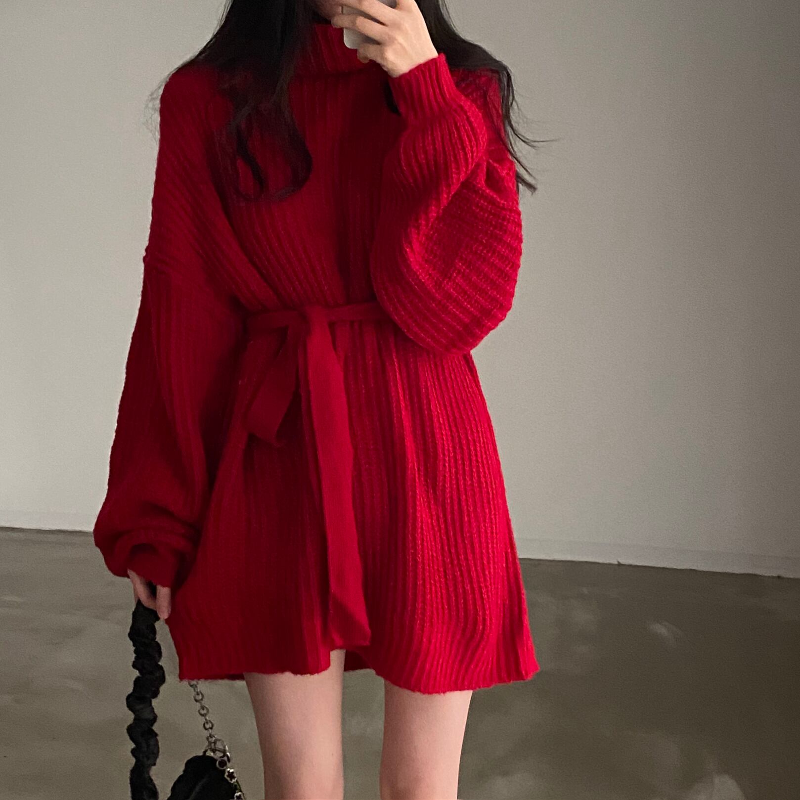 【韓国ファッション】大人可愛い スタンダードレッドプルオーバー ウェストニットドレス スカート ランタンスリーブ レトロ レース レースアップ ♡ 韓国16489668926 | パリジェンヌ、韓国系ファッション July