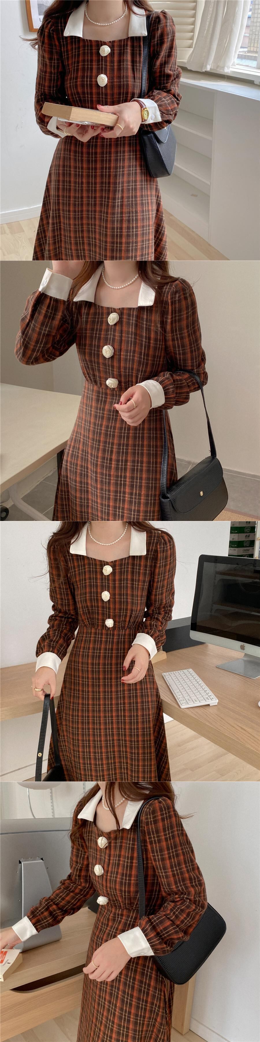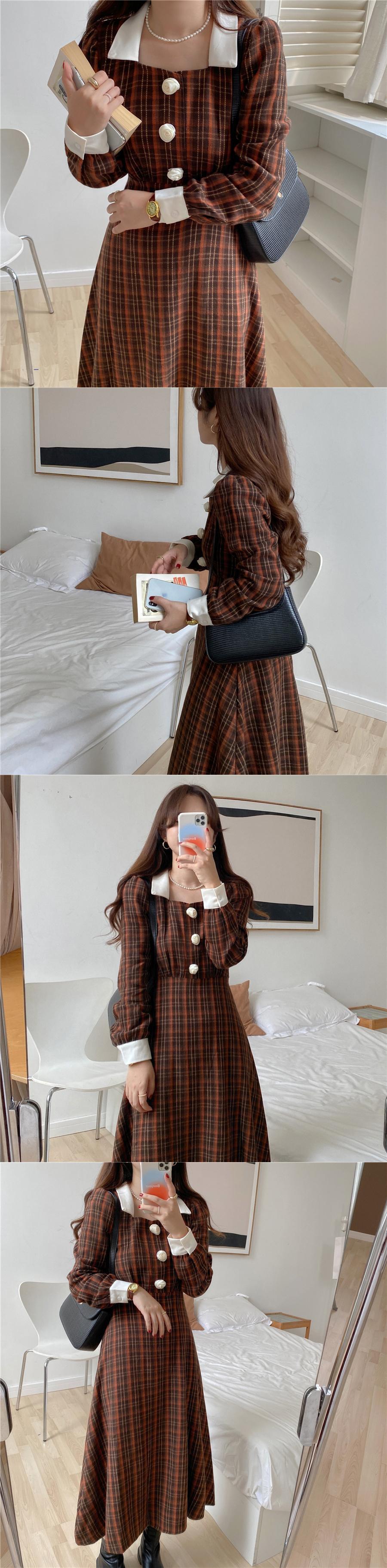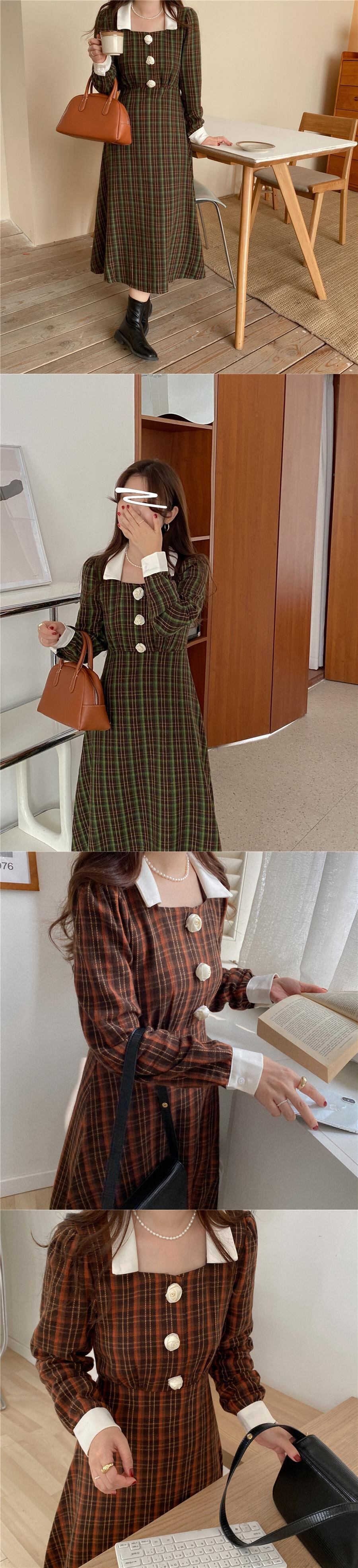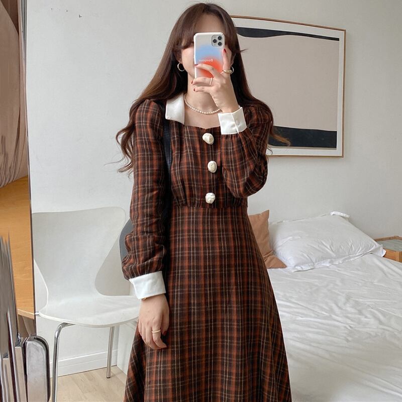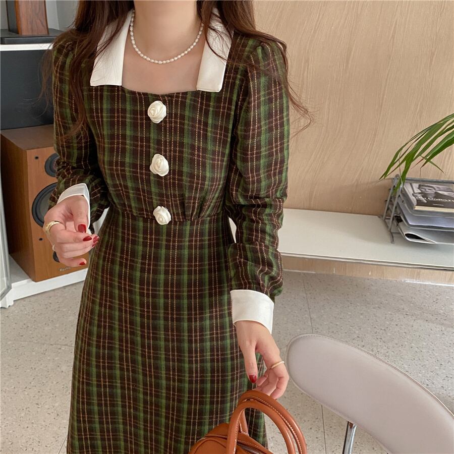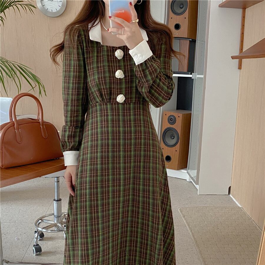 【韓国ファッション】大人可愛い オータムスタンダードカラーウェスト格子柄ドレス レディース ロング レトロ 秋物 フラワーデザイン ♡ 韓国33852422718 | パリジェンヌ、韓国系ファッション July