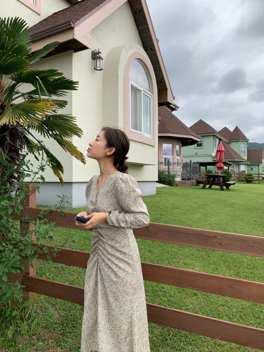 【韓国ファッション】大人可愛い オータムウィンタースタンダードVネックプリーツフローラルウェストドレス レディース レトロ 秋物 冬物 花柄 ♡ 韓国57507036948 | パリジェンヌ、韓国系ファッション July