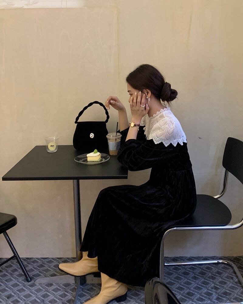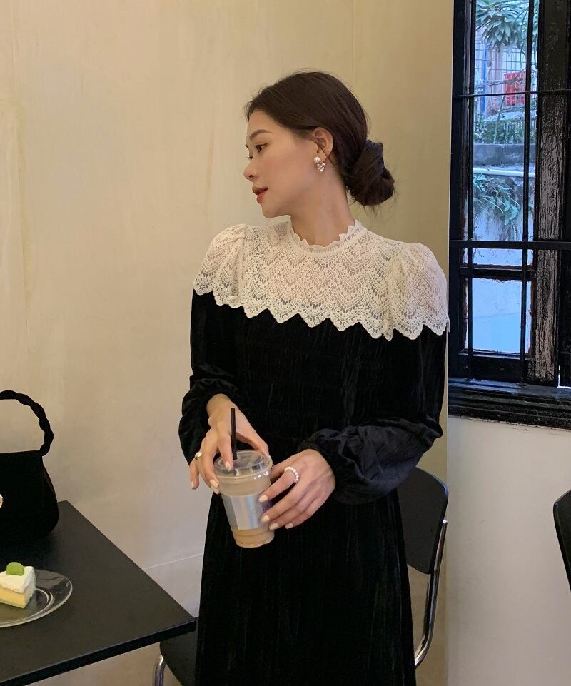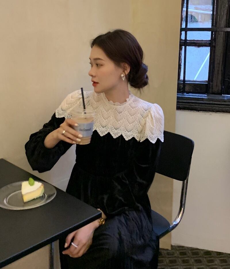 【韓国ファッション】大人可愛い ラウンドネックレースFlowerデザイン ウェストベルベットドレス レディース Oネック フラワーデザイン ステッチ ♡ 韓国91479731574 | パリジェンヌ、韓国系ファッション July
