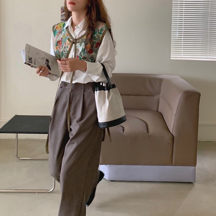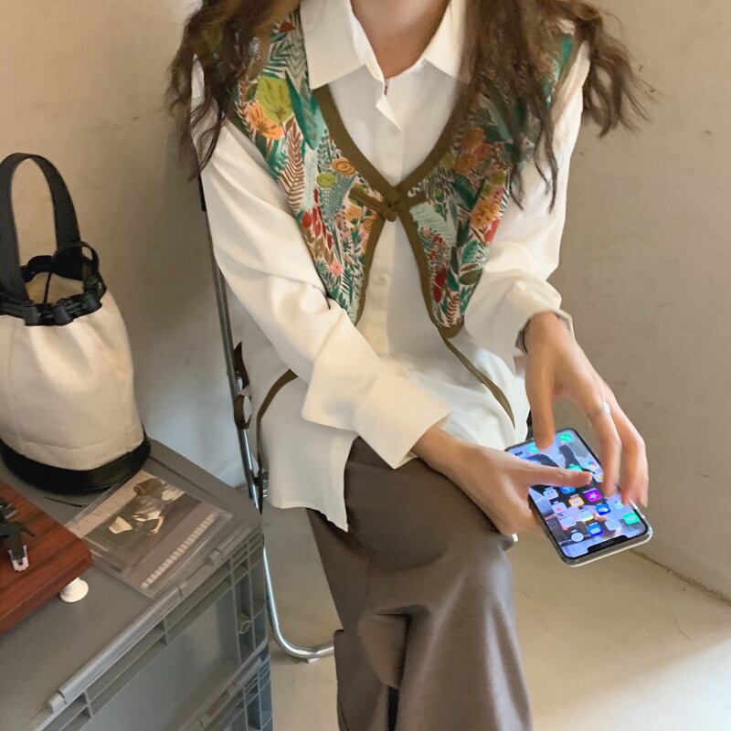 色:ベスト,白のシャツ