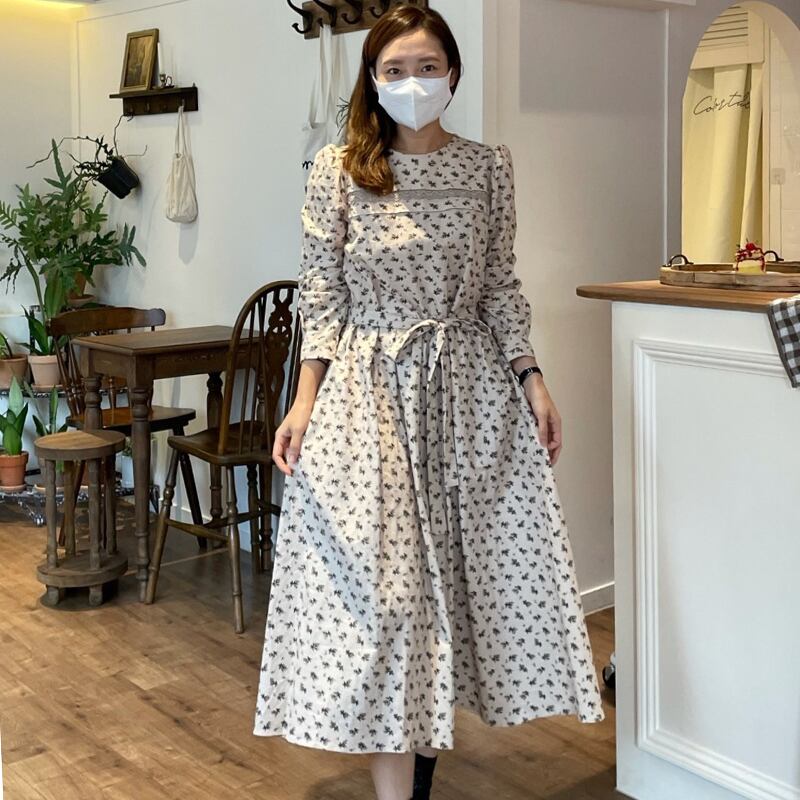 【韓国ファッション】大人可愛い オータムウィンターラウンドネックレースフローラルウェストスリーブドレス レディース 秋物 冬物 花柄 Oネック ステッチ ♡ 韓国6152477030 | パリジェンヌ、韓国系ファッション July