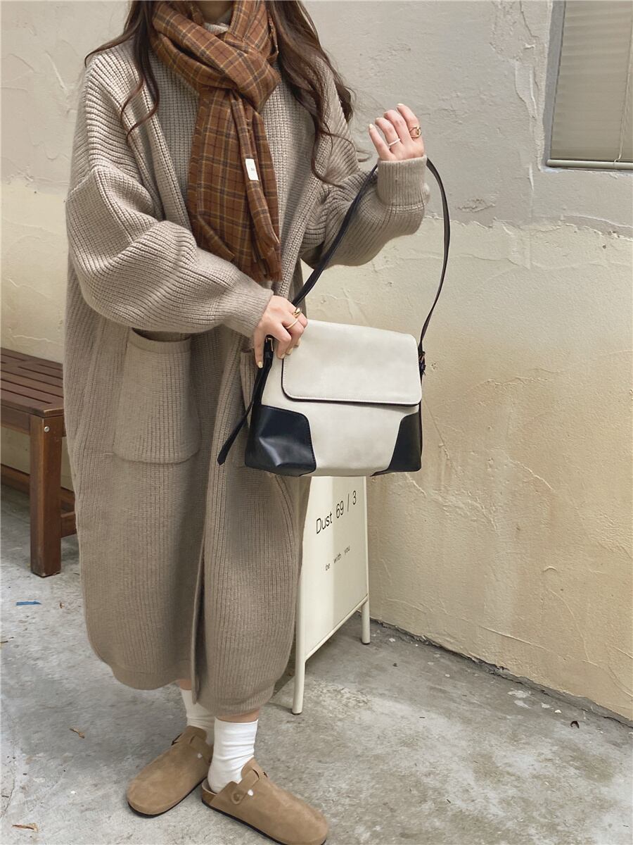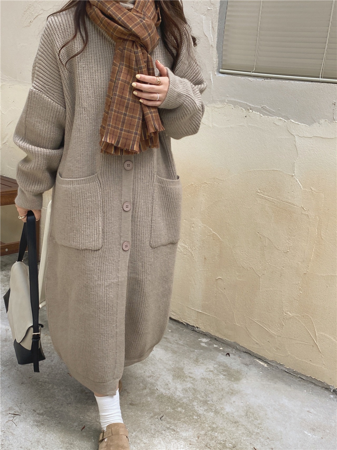 【韓国ファッション】大人可愛い オータムウィンタースタンダードカラーポケットシングルブレストルーズロングニットカーディガンジャケット レディース レトロ 秋物 冬物 ♡ 韓国13481036984 | パリジェンヌ、韓国系ファッション July