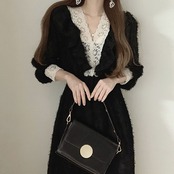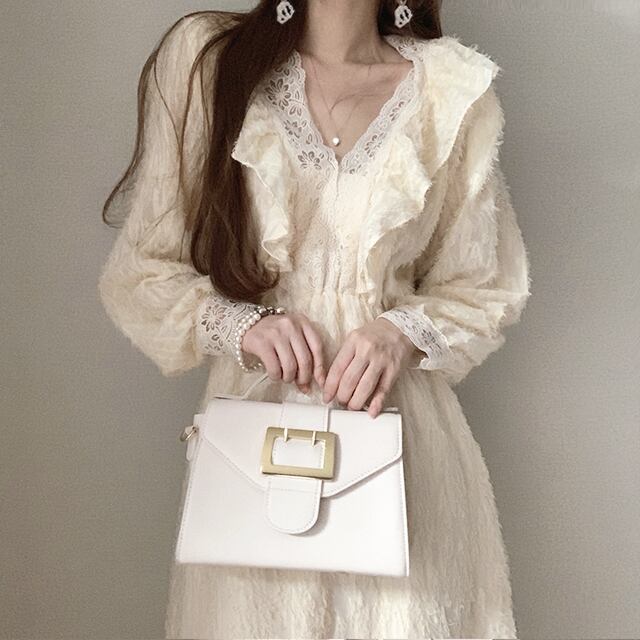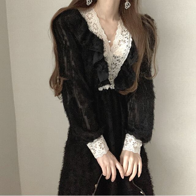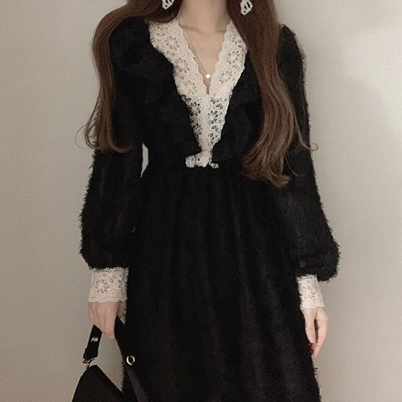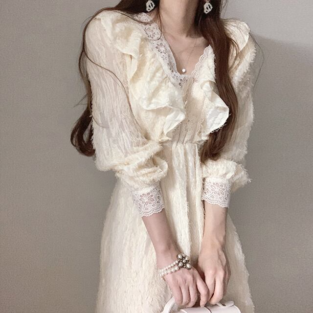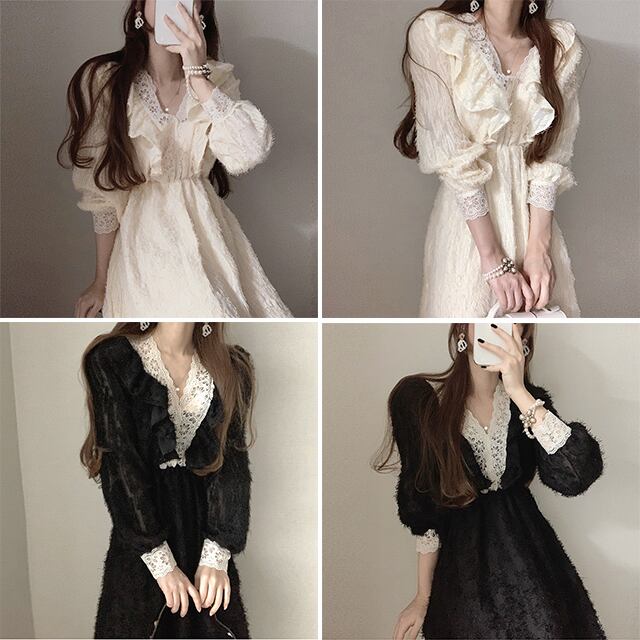 【韓国ファッション】大人可愛い スタンダードVネックレースカラーハイウェストウェスト薄手スリーブドレス ロングスカート レトロ ♡ 韓国36939266676 | パリジェンヌ、韓国系ファッション July