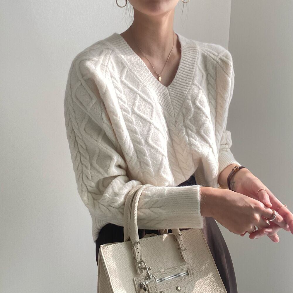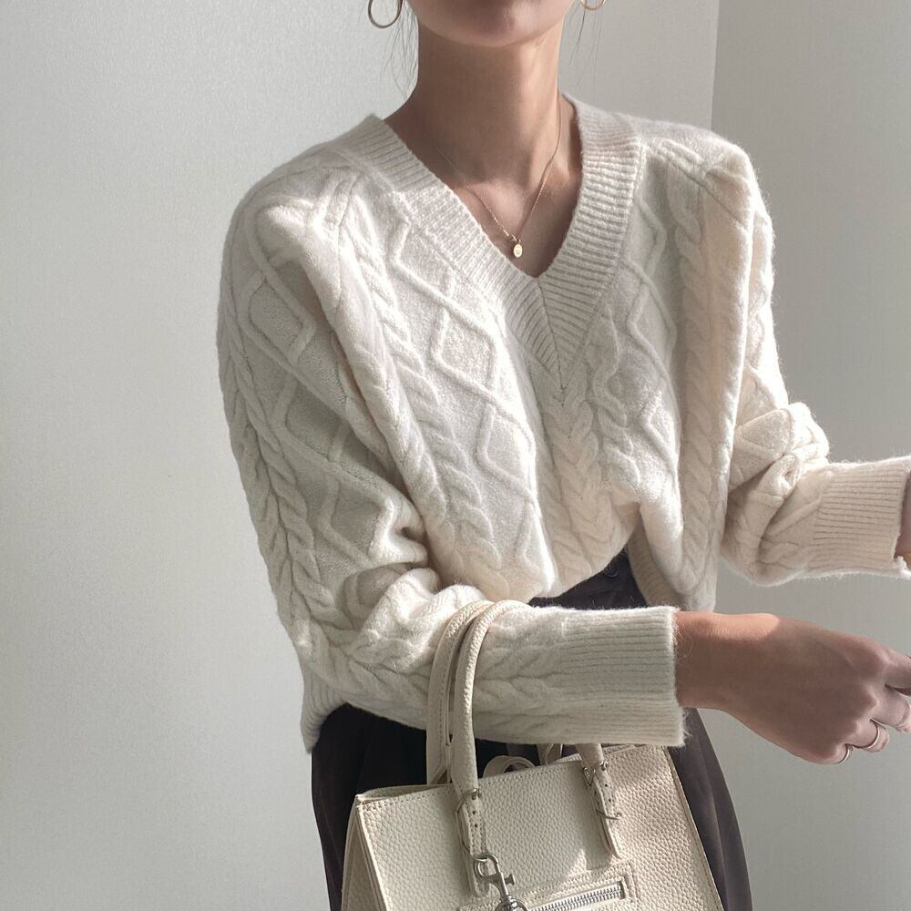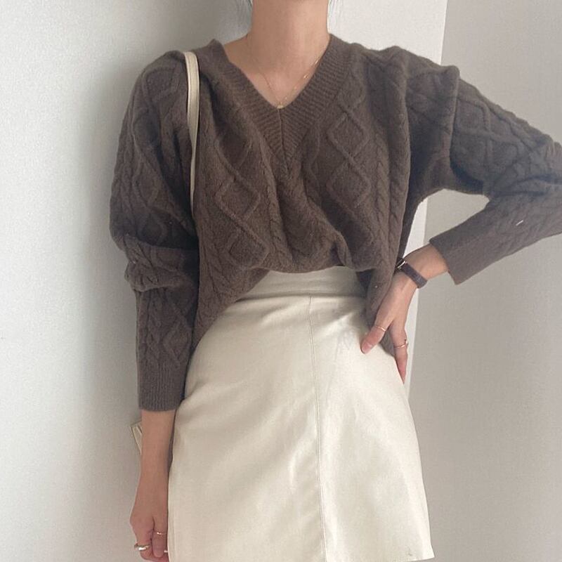 【韓国ファッション】大人可愛い オータムウィンタースタンダードVネックパターンルーズニットセーター レディース ロング レトロ 秋物 冬物 ♡ 韓国94513886446 | パリジェンヌ、韓国系ファッション July