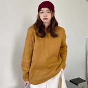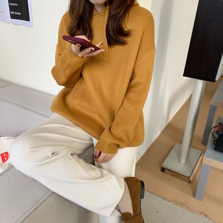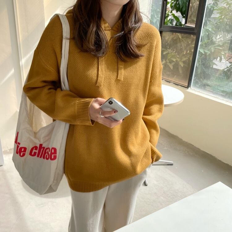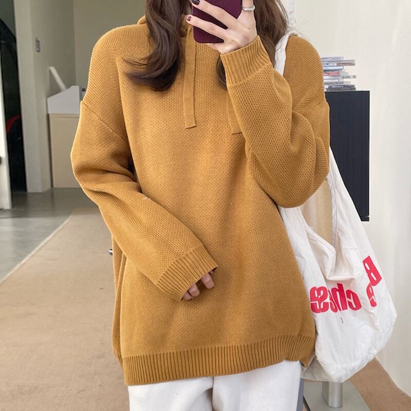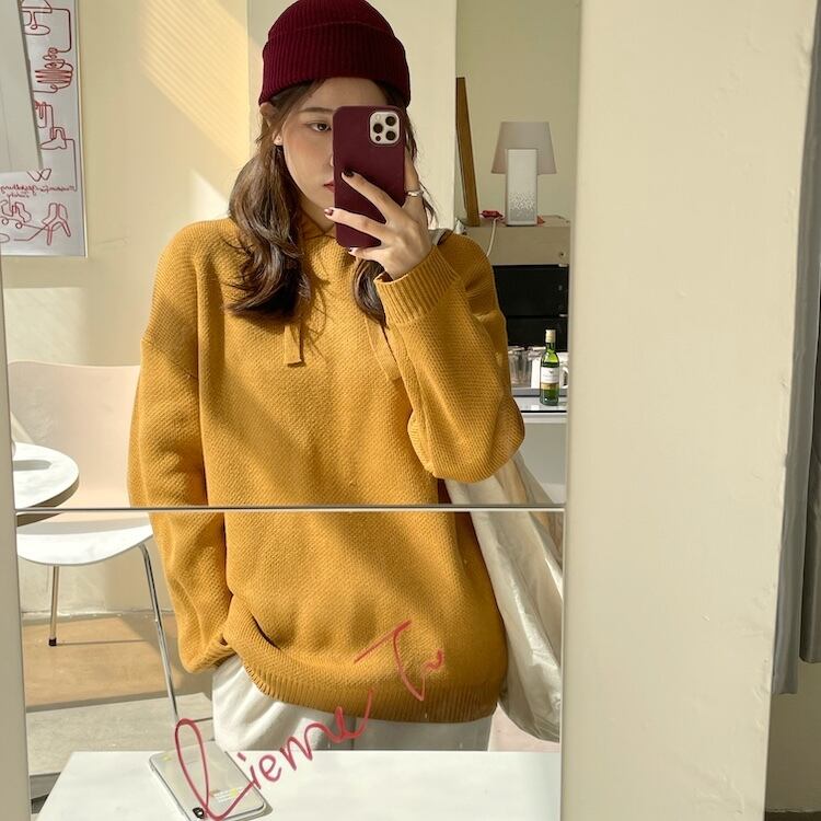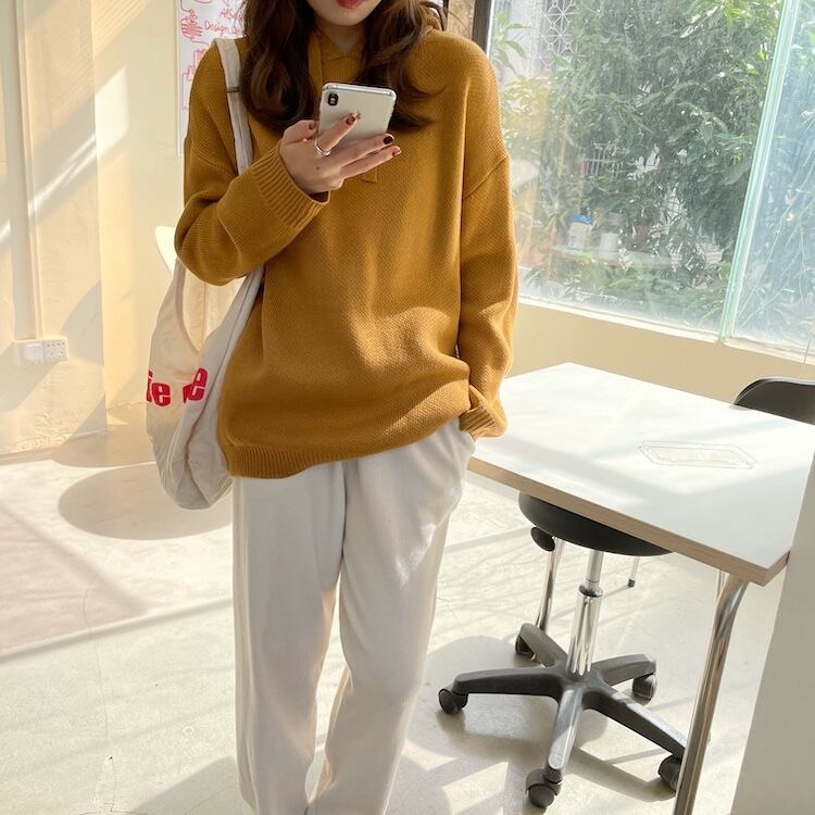 【韓国ファッション】大人可愛い オータムスタンダードフードギャザープルオーバー ルーズカジュアルソリッド カラーニットセーター ロング レトロ 秋物 ソリッドカラー ♡ 韓国84164551238 | パリジェンヌ、韓国系ファッション July